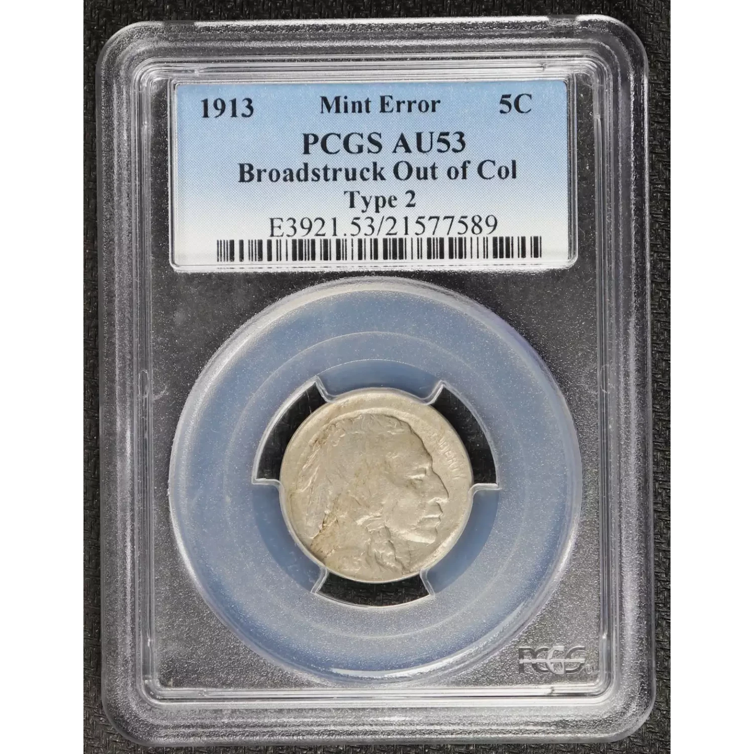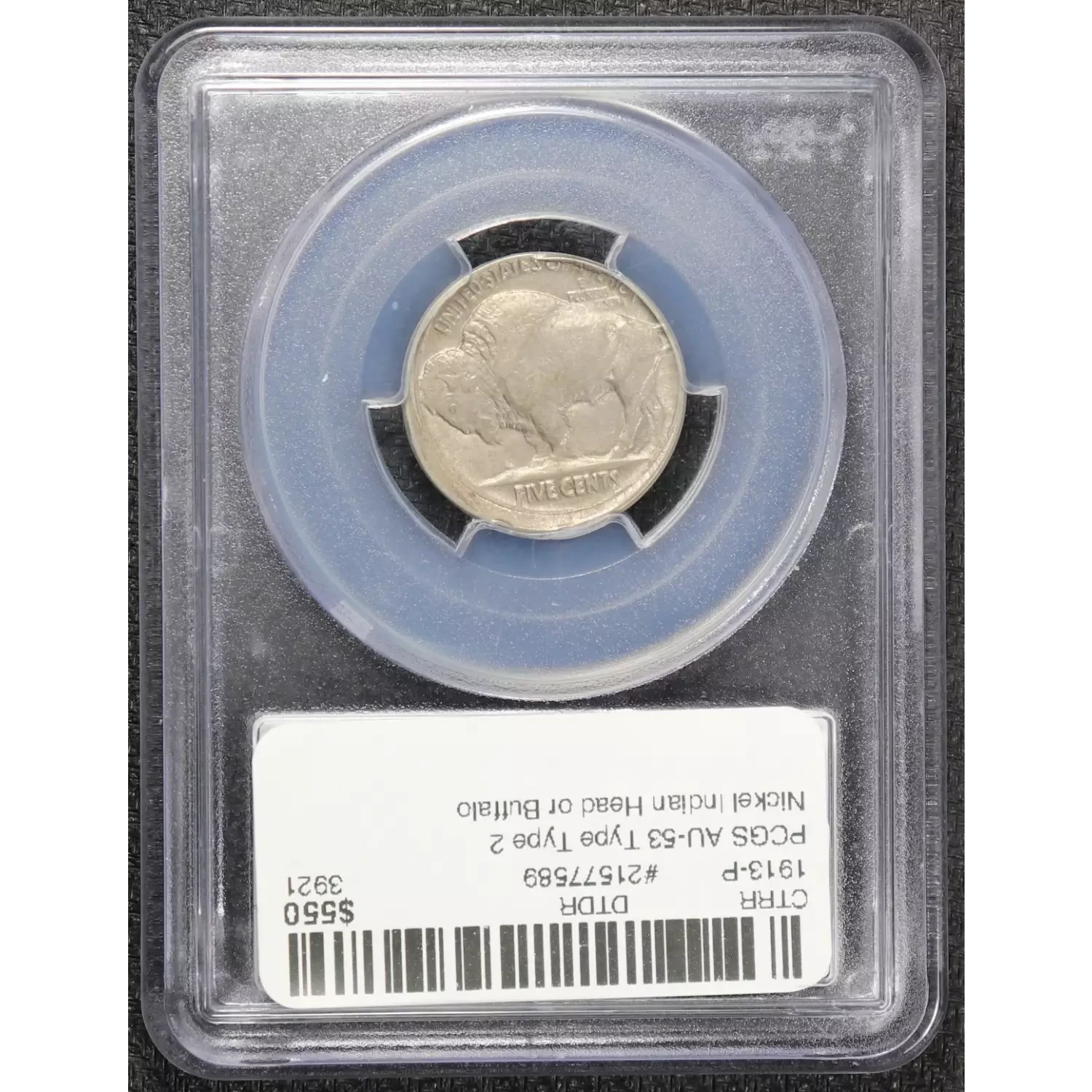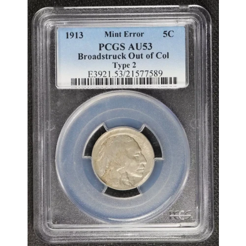 1913 Nickel Indian Head or Buffalo PCGS AU-53 Type 2. Broadstruck Type 2