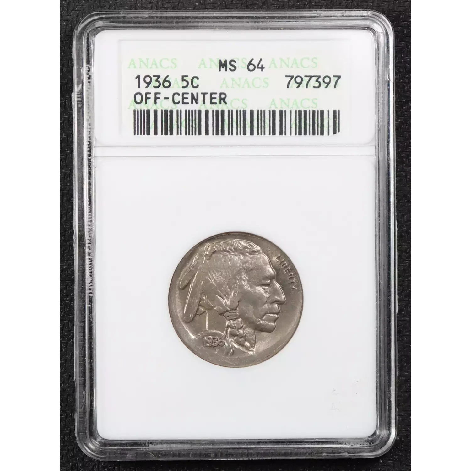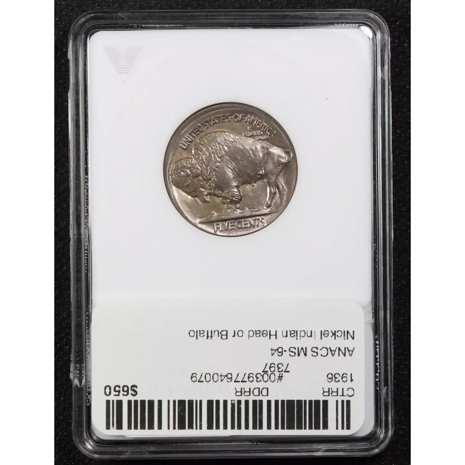 1936 Nickel Indian Head or Buffalo ANACS MS-64