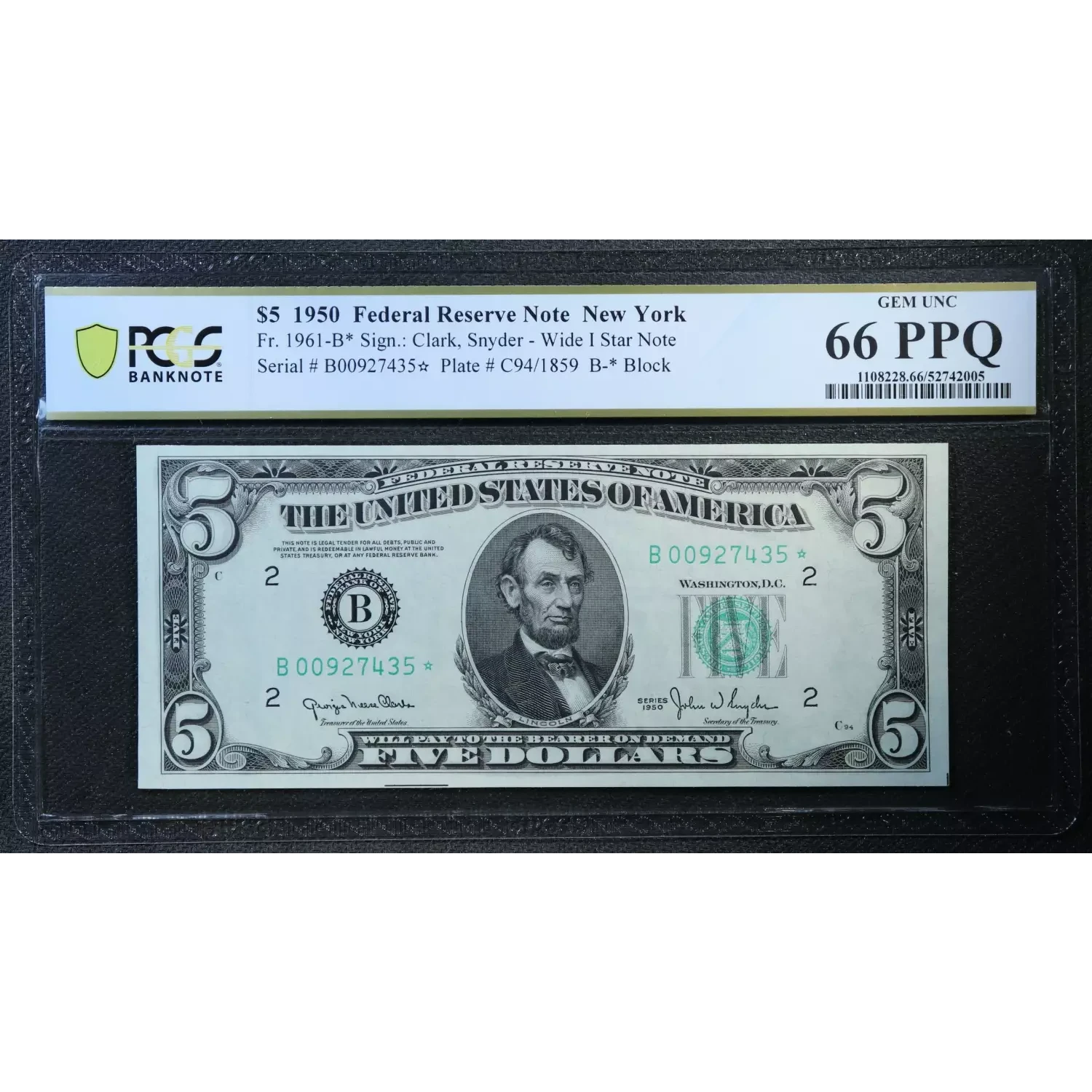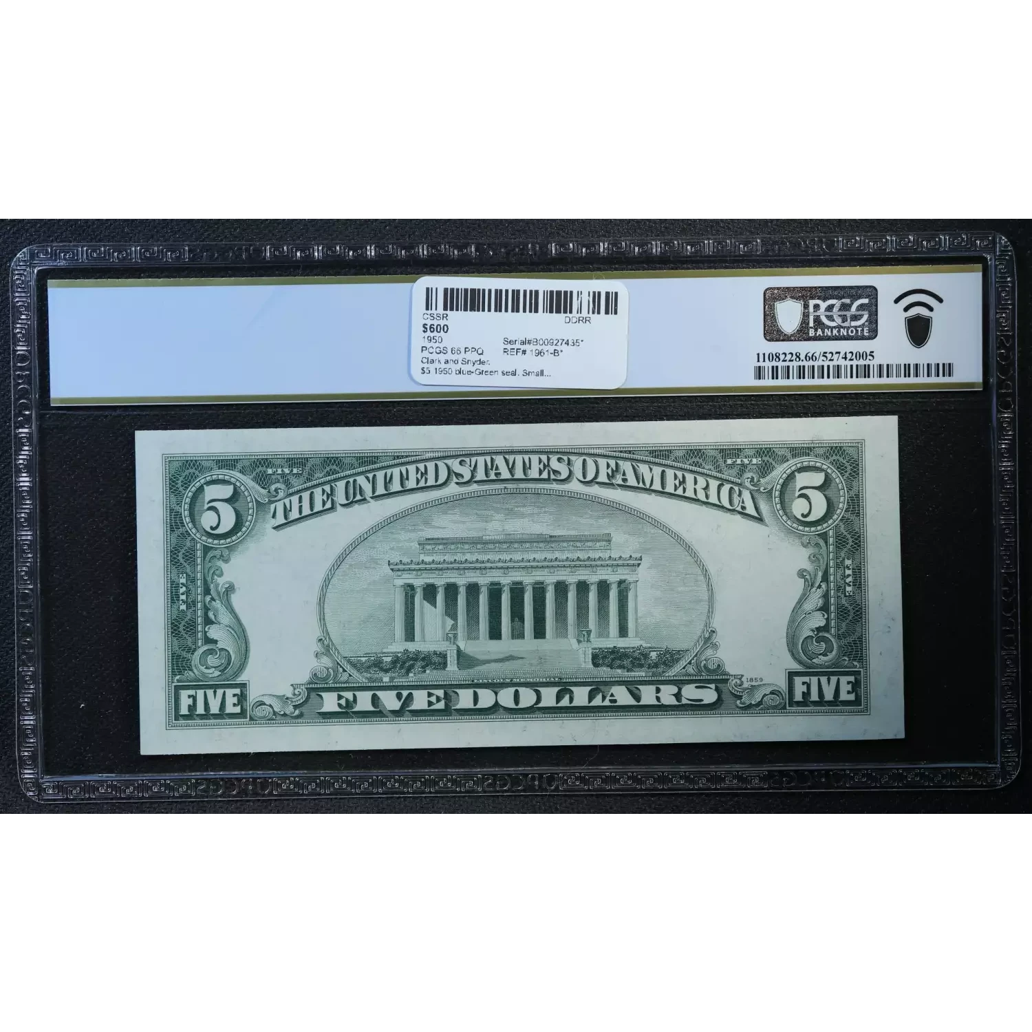 $5 1950 blue-Green seal. Small Size $5 Federal Reserve Notes 1961-B*