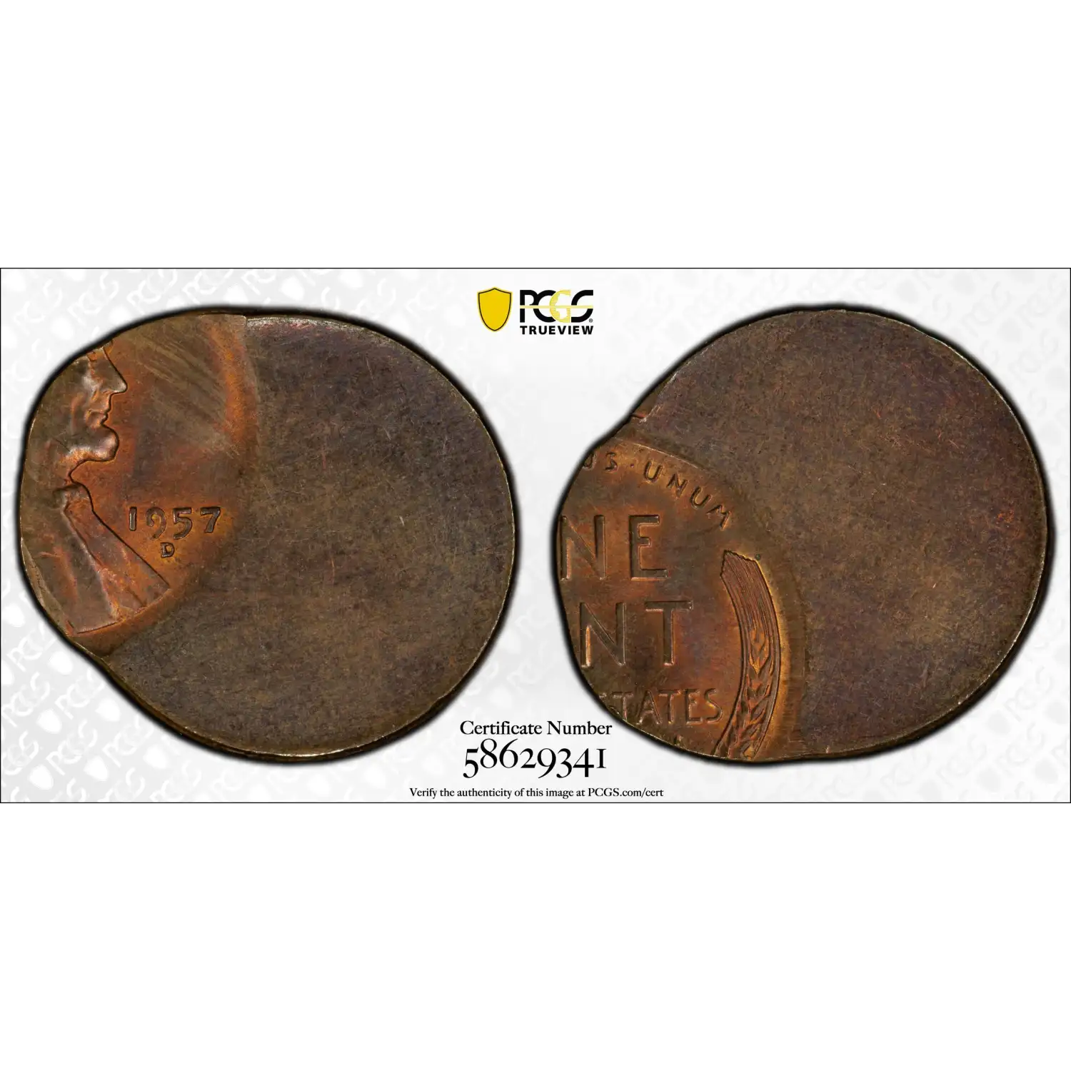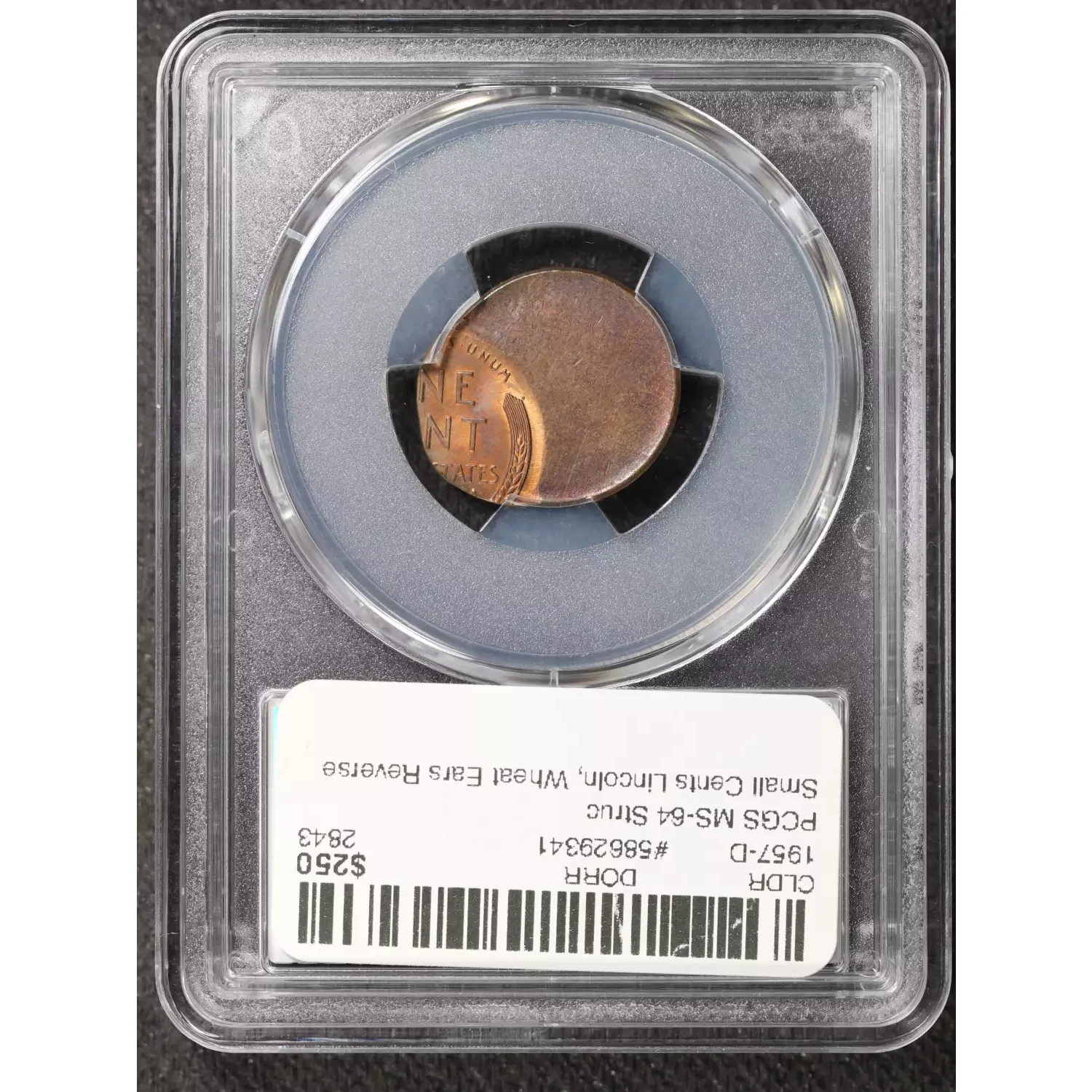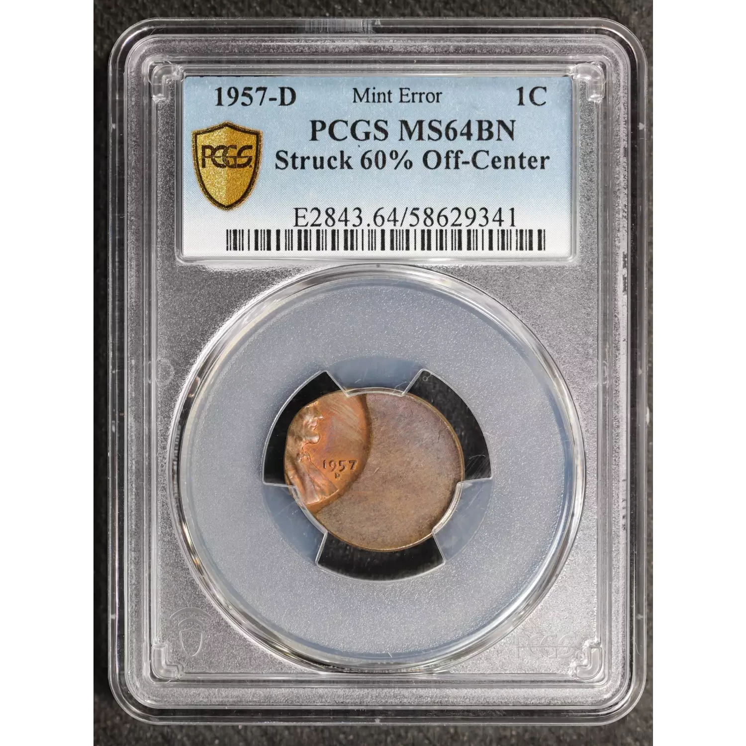 1957-D Small Cents Lincoln, Wheat Ears Reverse PCGS MS-64 Struck 60% Off Center