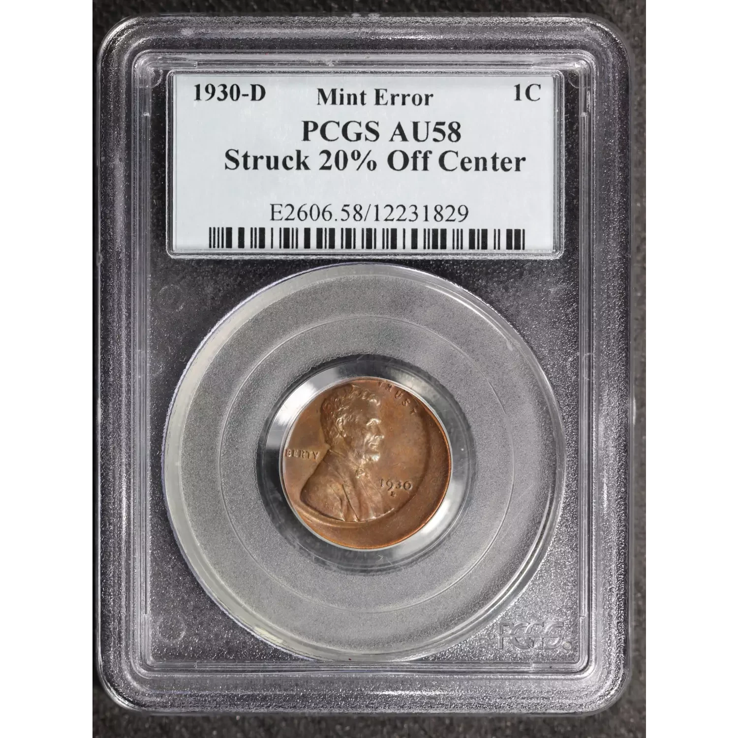 1930-D Small Cents Lincoln, Wheat Ears Reverse PCGS AU-58 Struck 20% Off Center