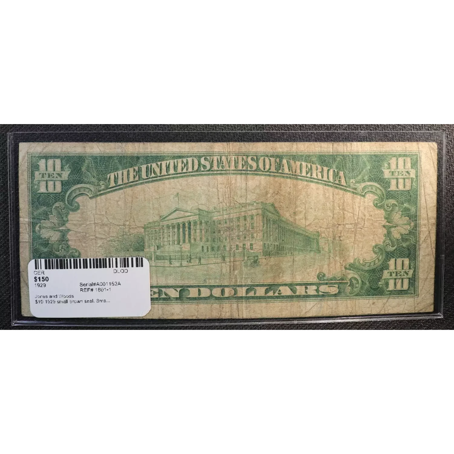 $10 1929 small brown seal. Small National Bank Notes 1801-1