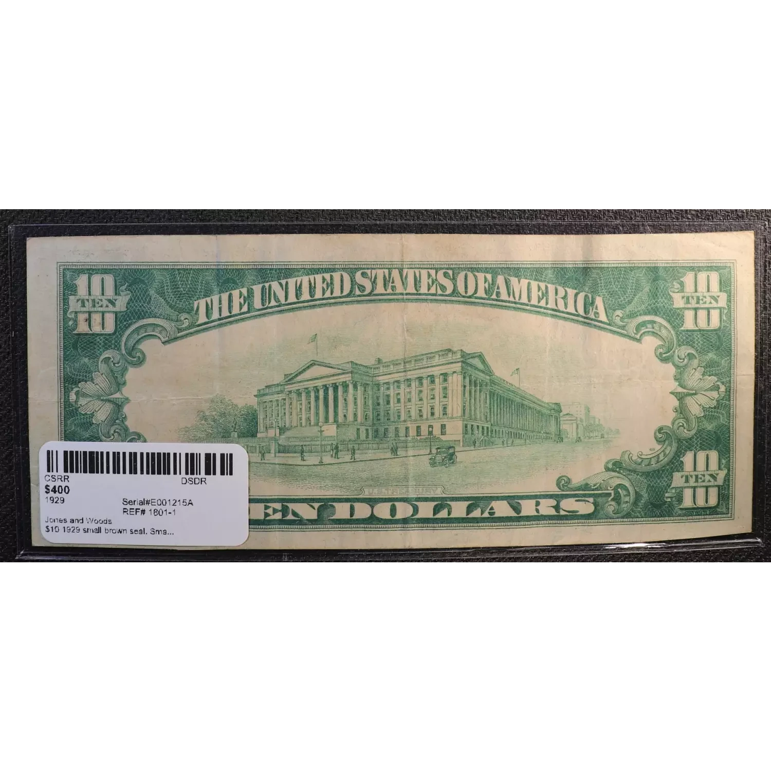 $10 1929 small brown seal. Small National Bank Notes 1801-1