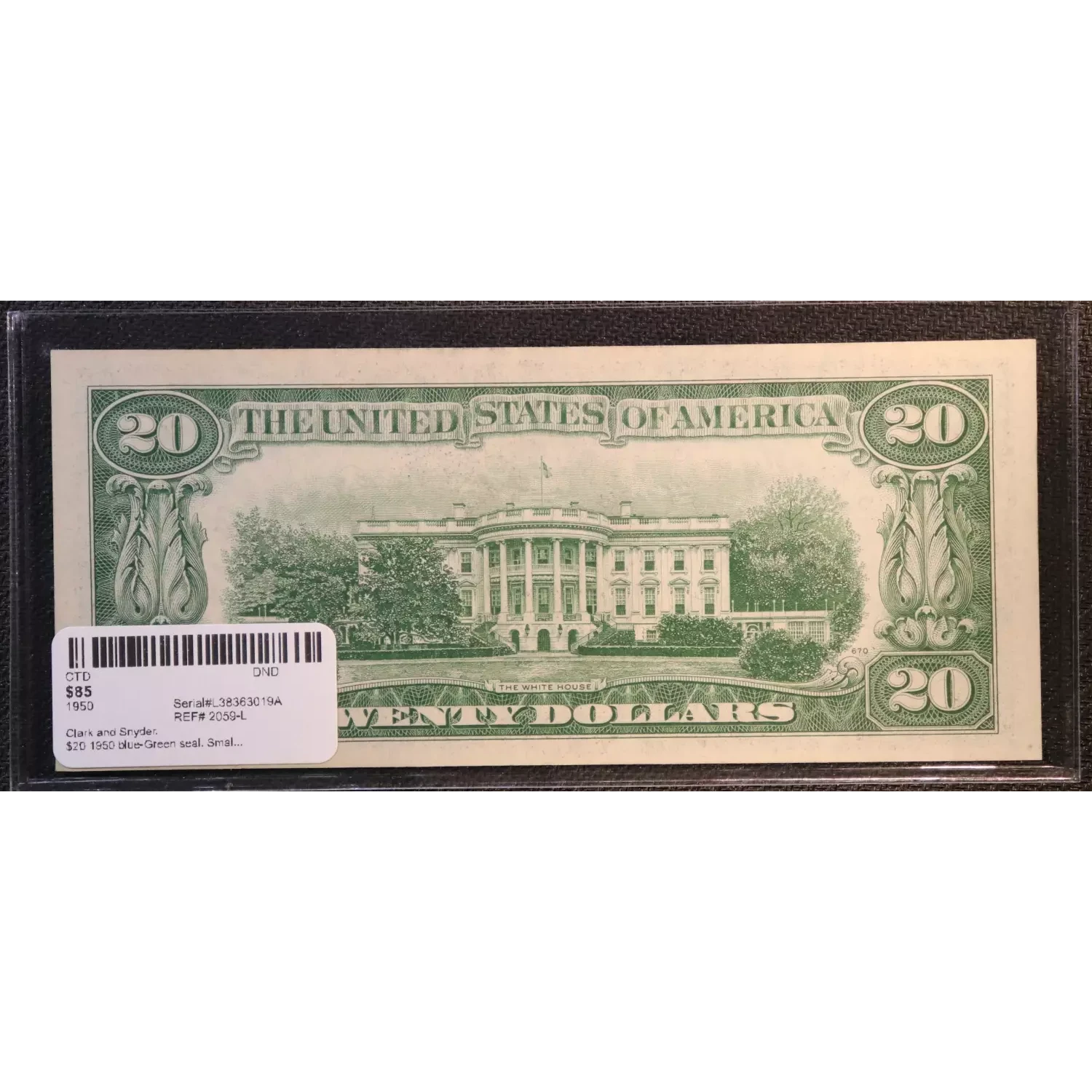 $20 1950 blue-Green seal. Small Size $20 Federal Reserve Notes 2059-L