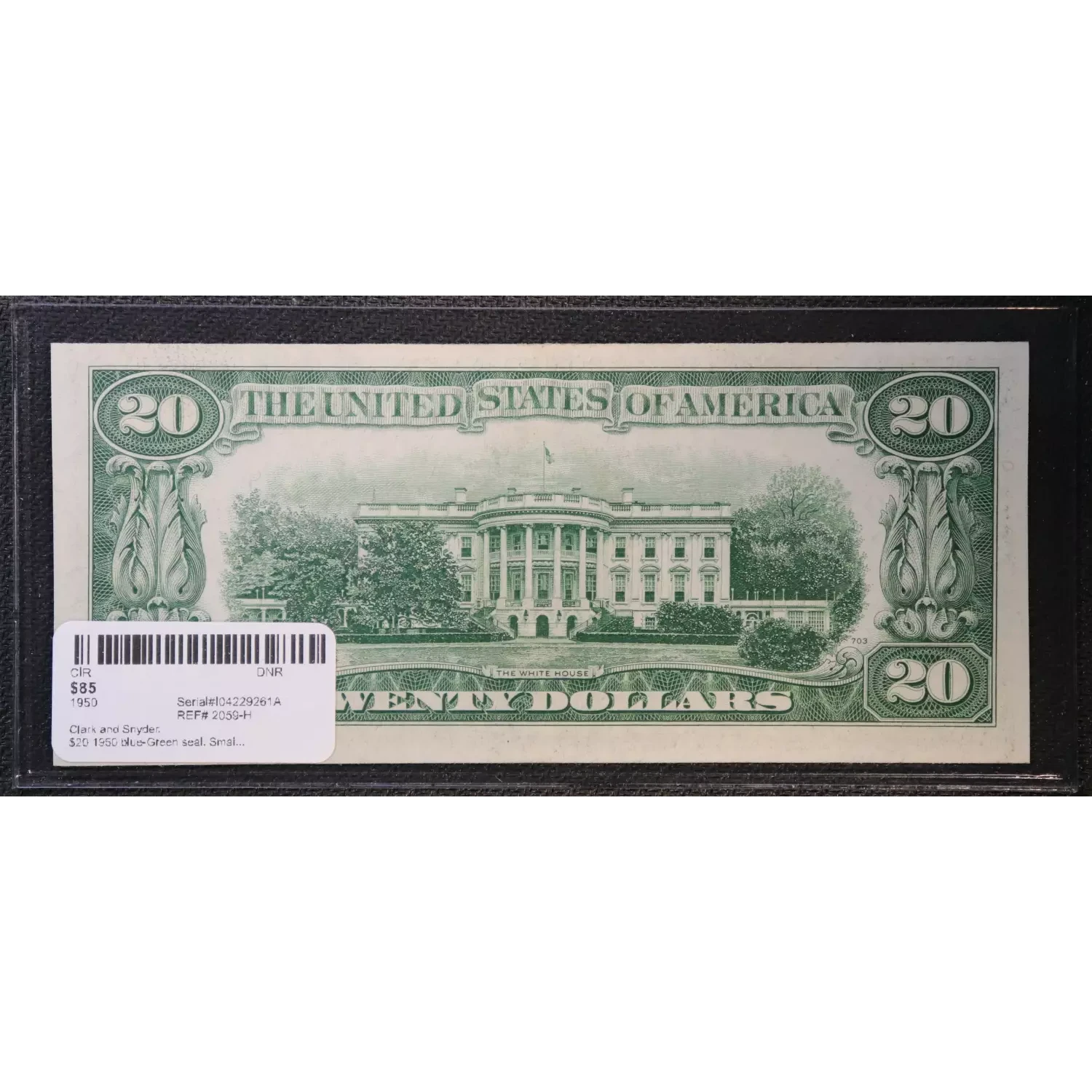 $20 1950 blue-Green seal. Small Size $20 Federal Reserve Notes 2059-H