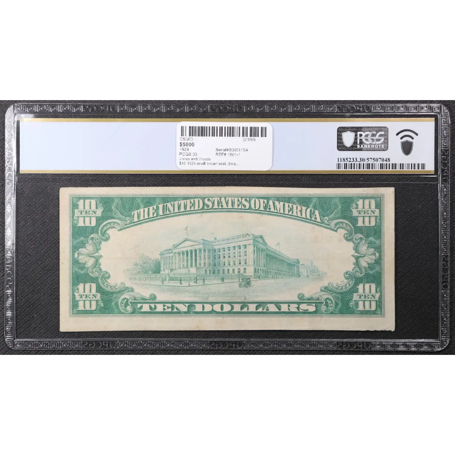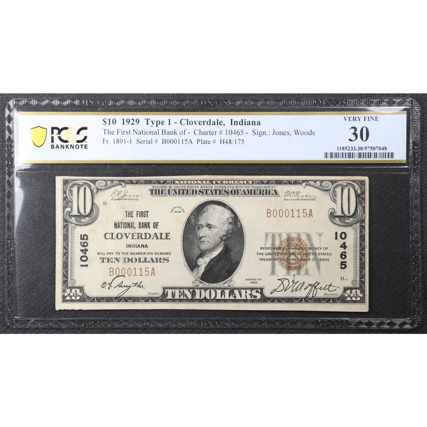 $10 1929 small brown seal. Small National Bank Notes 1801-1