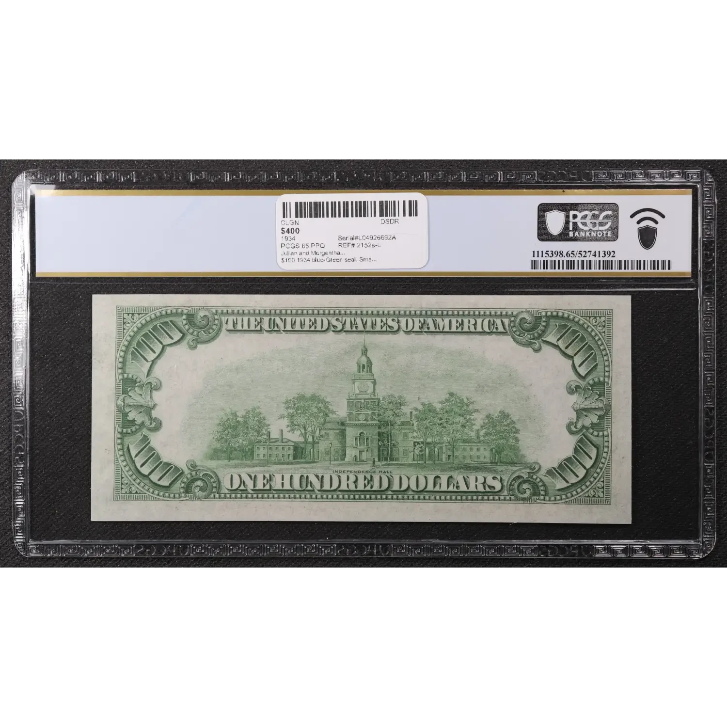 $100 1934 blue-Green seal. Small Size $100 Federal Reserve Notes 2152a-L