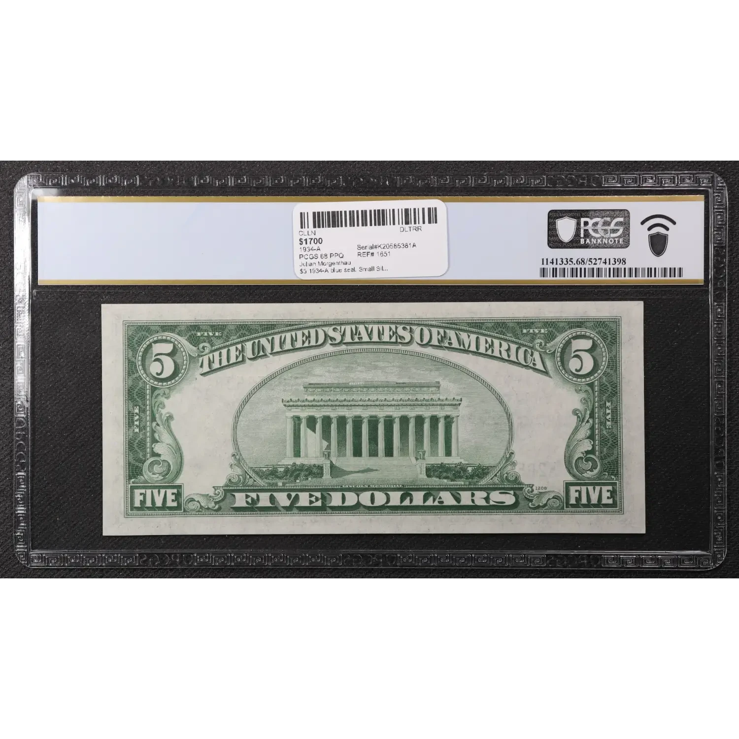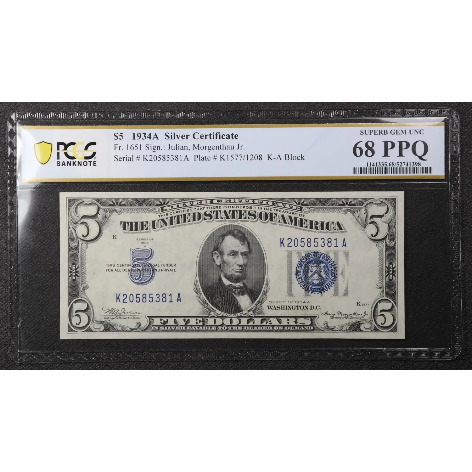 $5 1934-A blue seal. Small Silver Certificates 1651