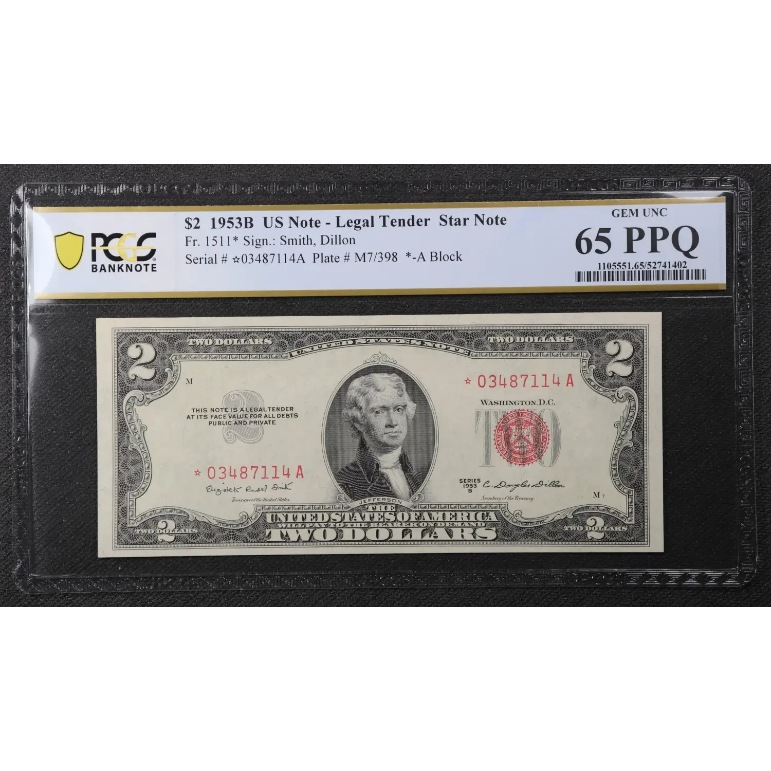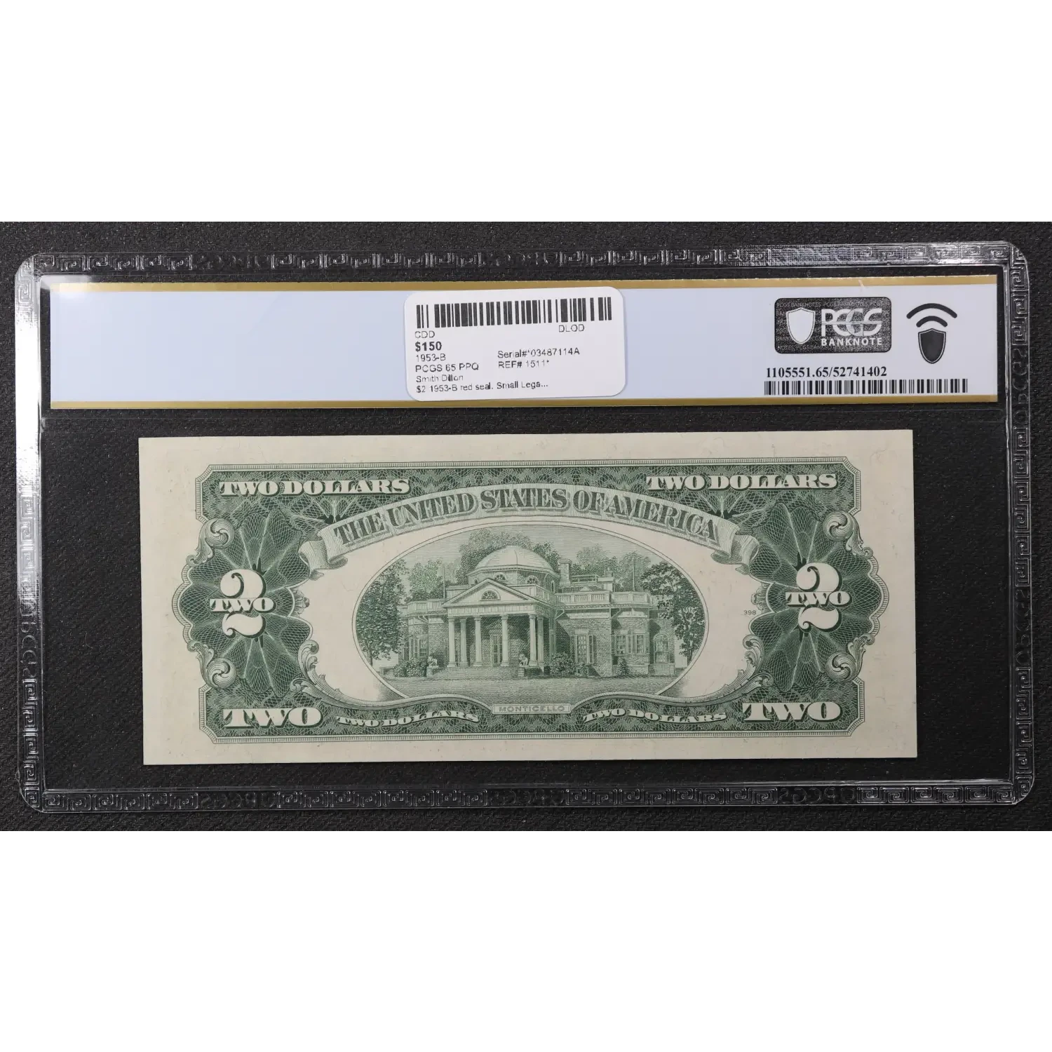 $2 1953-B red seal. Small Legal Tender Notes 1511*