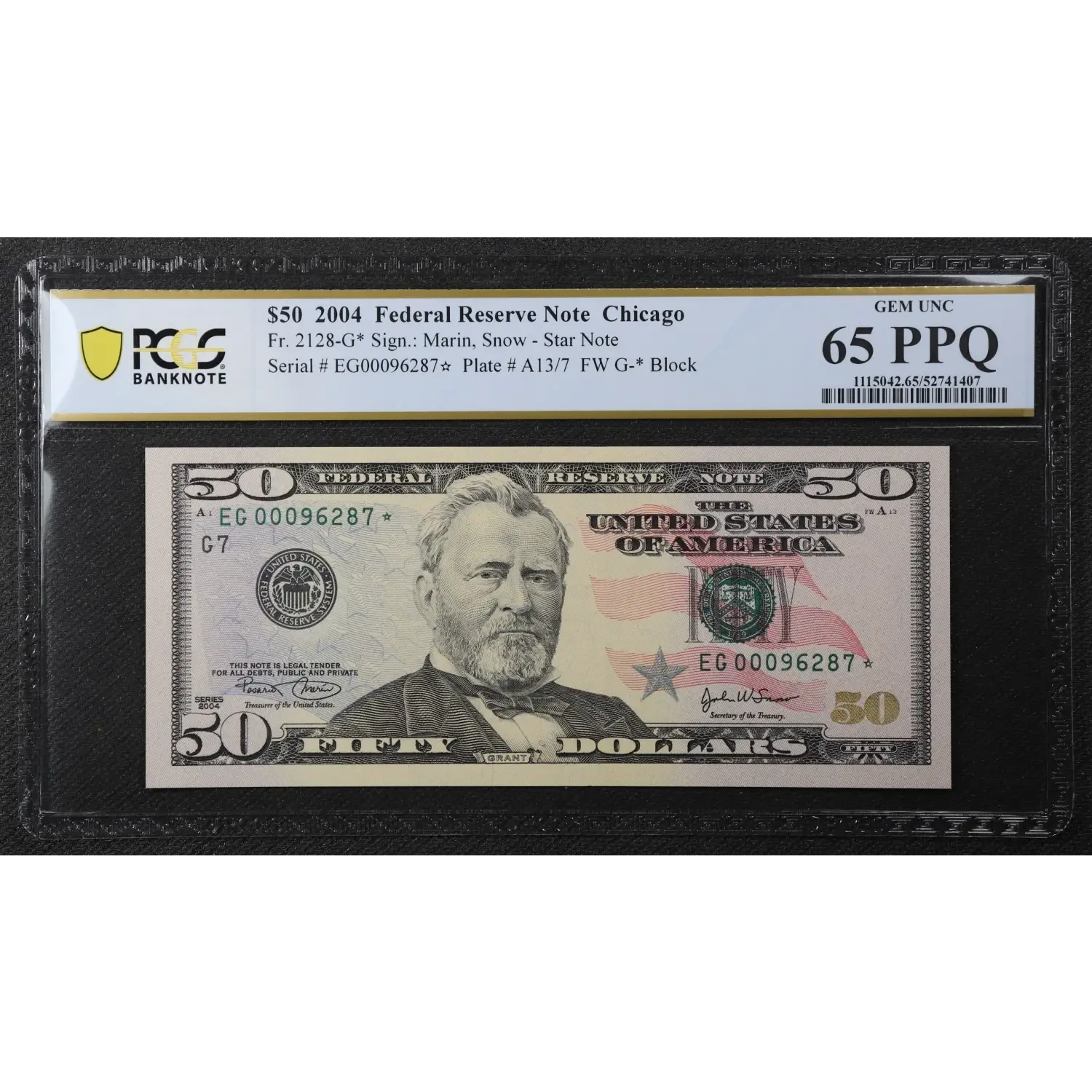 $50 2004 blue-Green seal. Small Size $50 Federal Reserve Notes 2128-G*