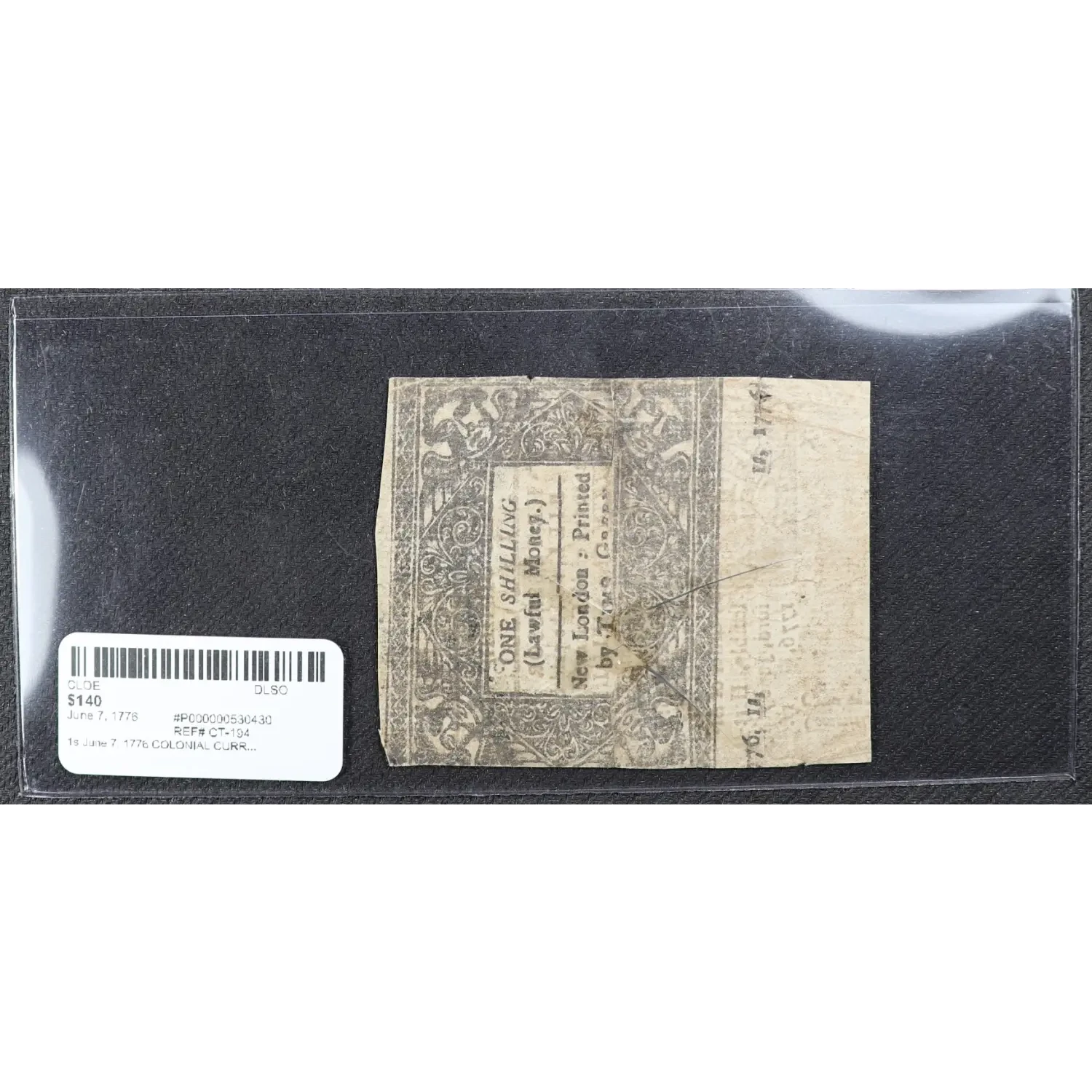 1s June 7, 1776 COLONIAL CURRENCY CT-194