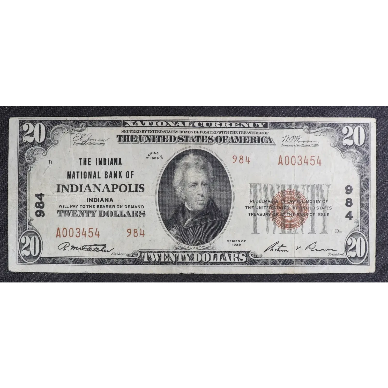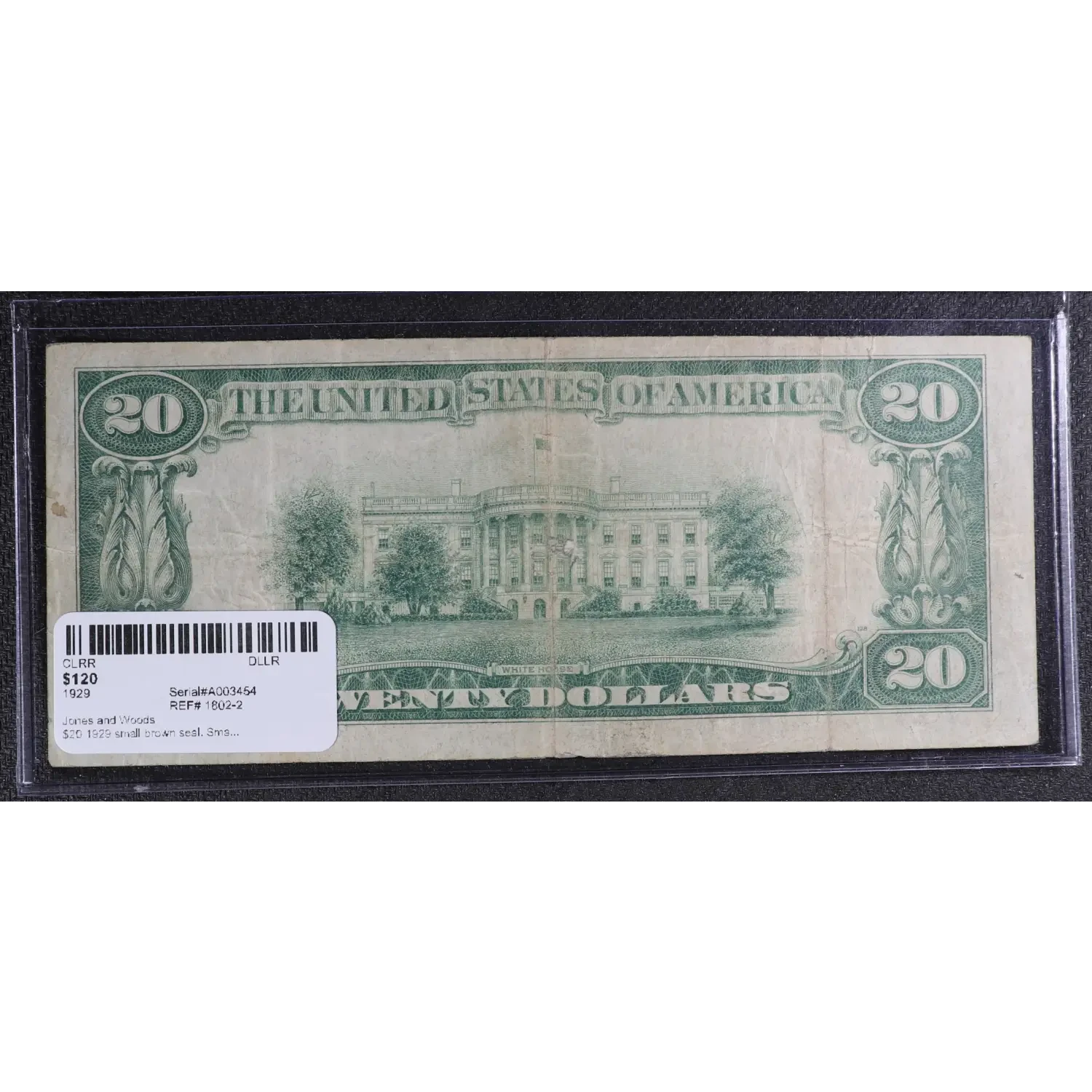 $20 1929 small brown seal. Small National Bank Notes 1802-2