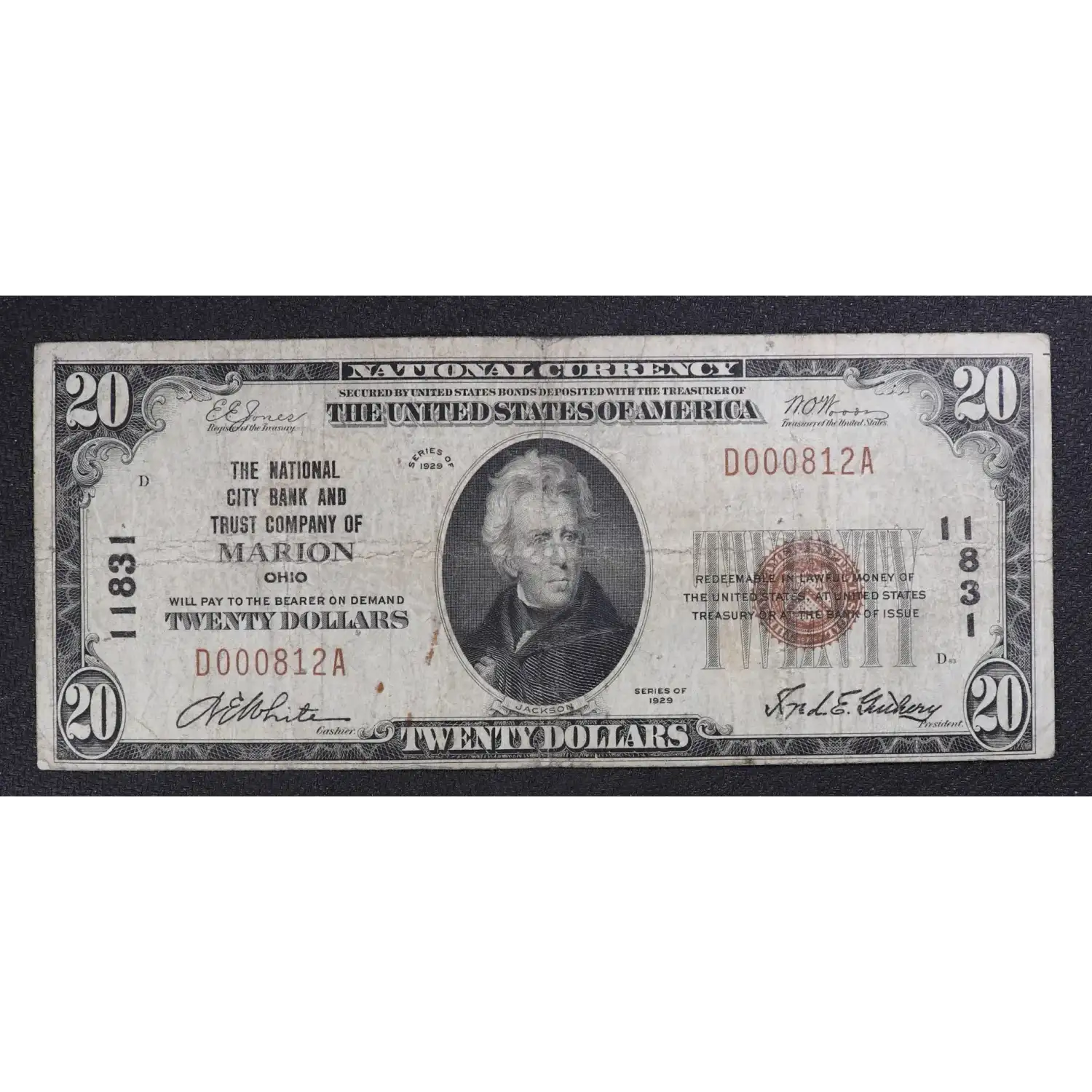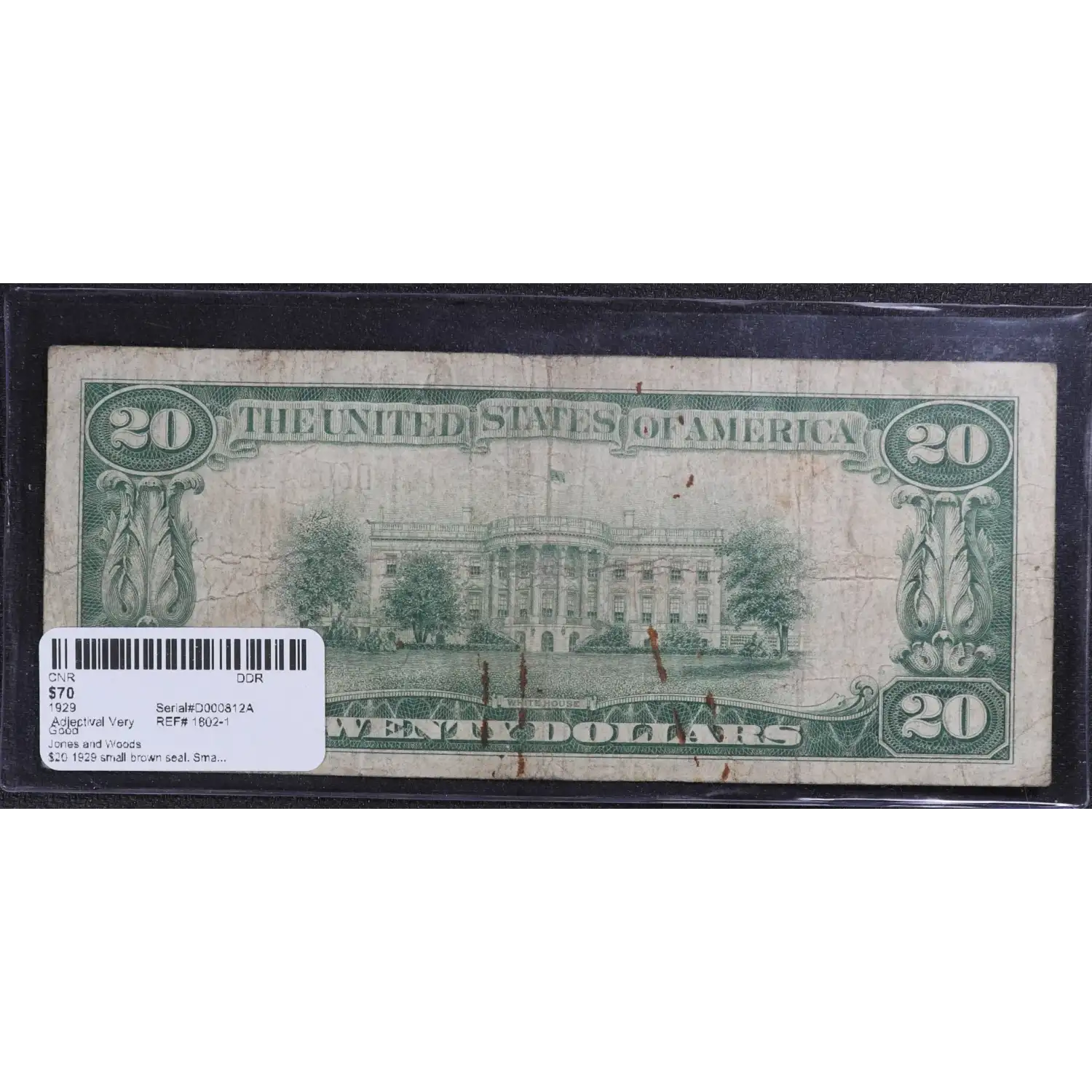 $20 1929 small brown seal. Small National Bank Notes 1802-1
