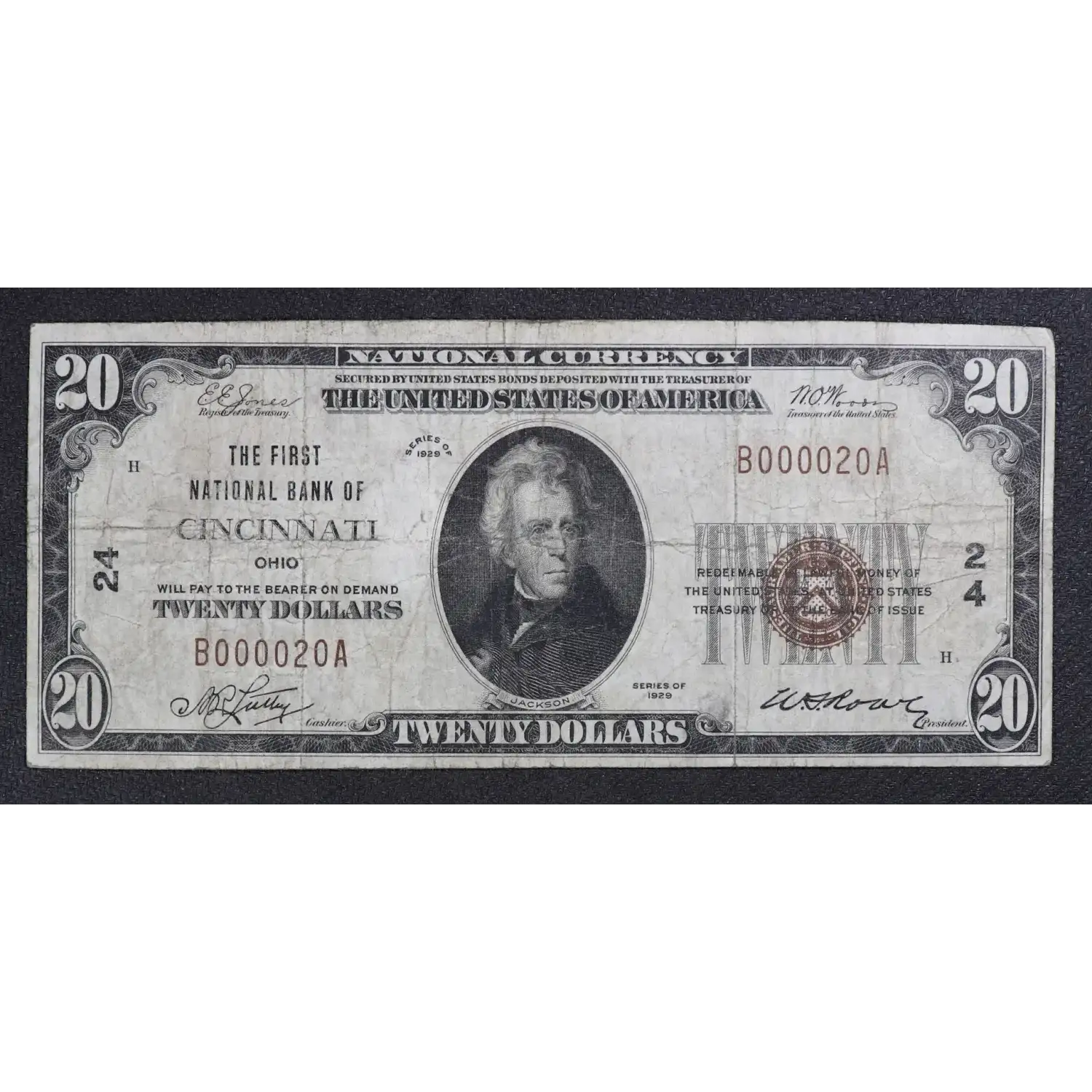 $20 1929 small brown seal. Small National Bank Notes 1802-1