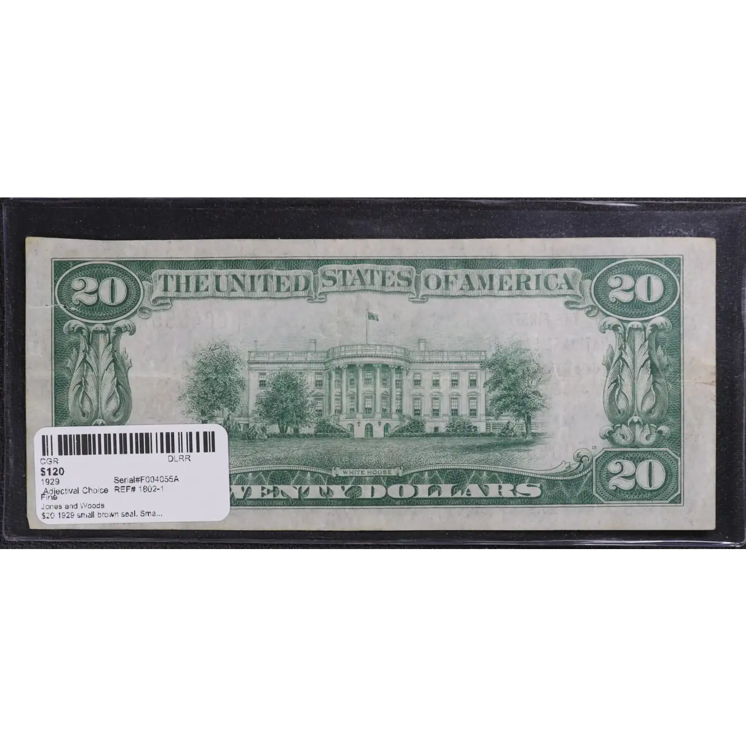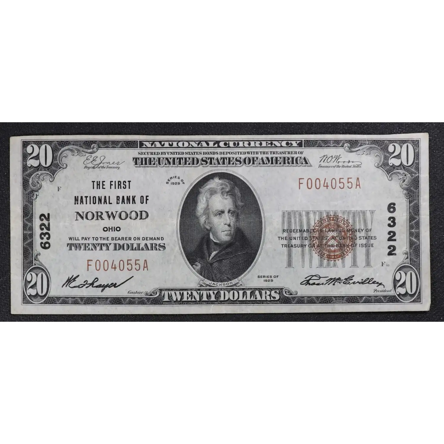 $20 1929 small brown seal. Small National Bank Notes 1802-1