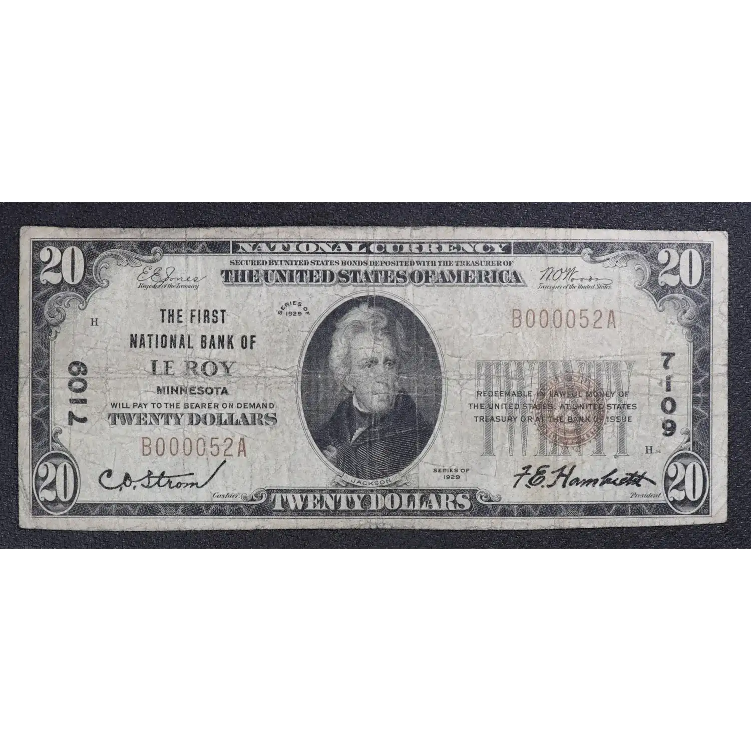 $20 1929 small brown seal. Small National Bank Notes 1802-1