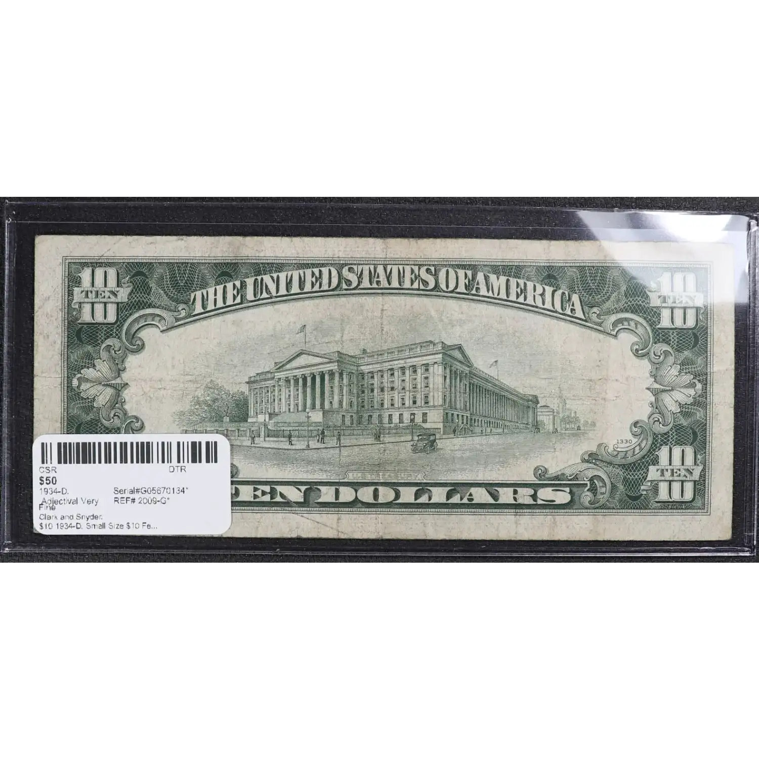 $10 1934-D. Small Size $10 Federal Reserve Notes 2009-G*