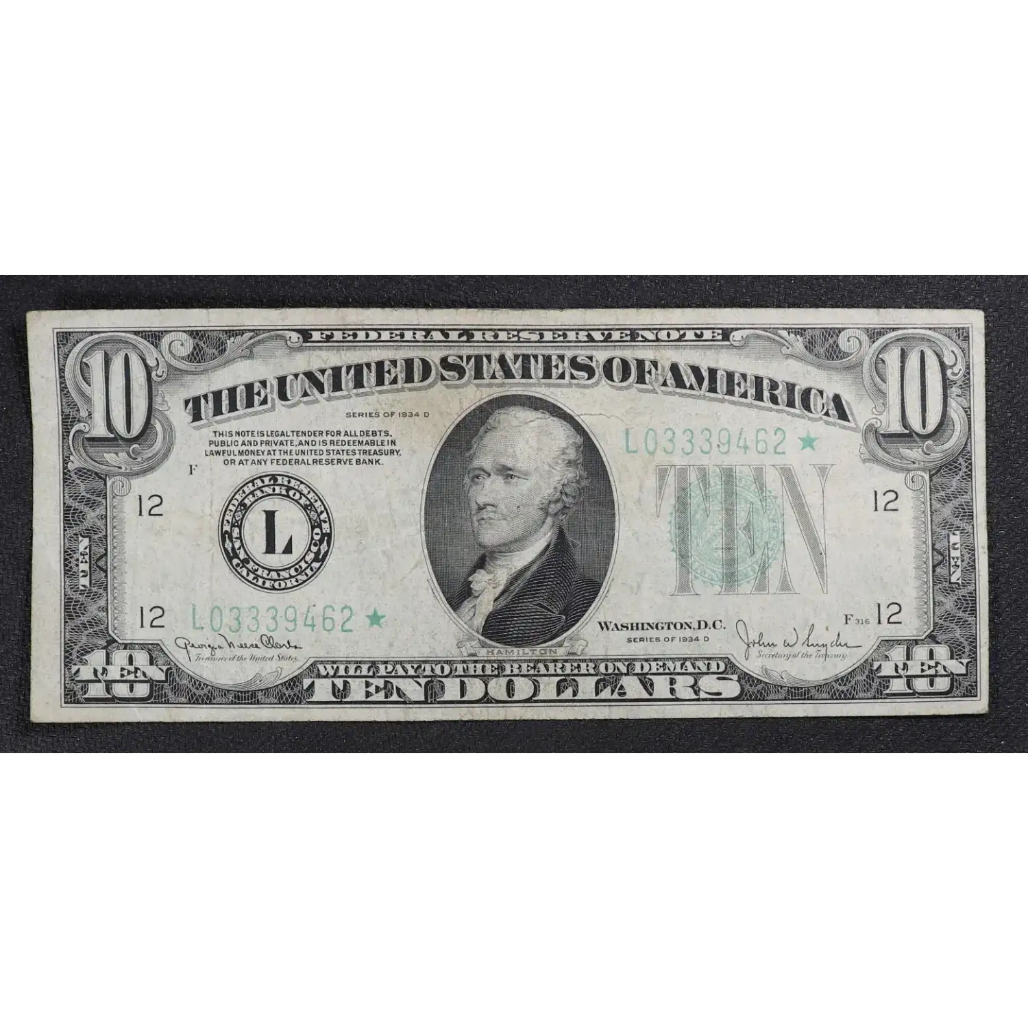$10 1934-D. Small Size $10 Federal Reserve Notes 2009-L*