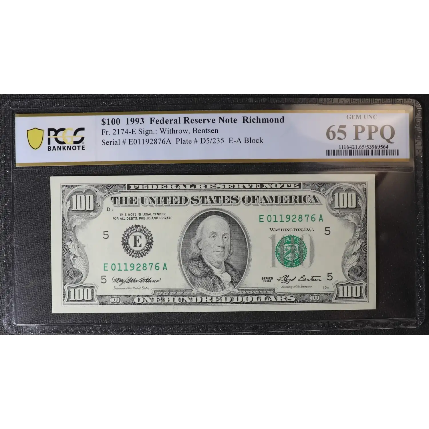 $100 1993 Small Size $100 Federal Reserve Notes 2174-E