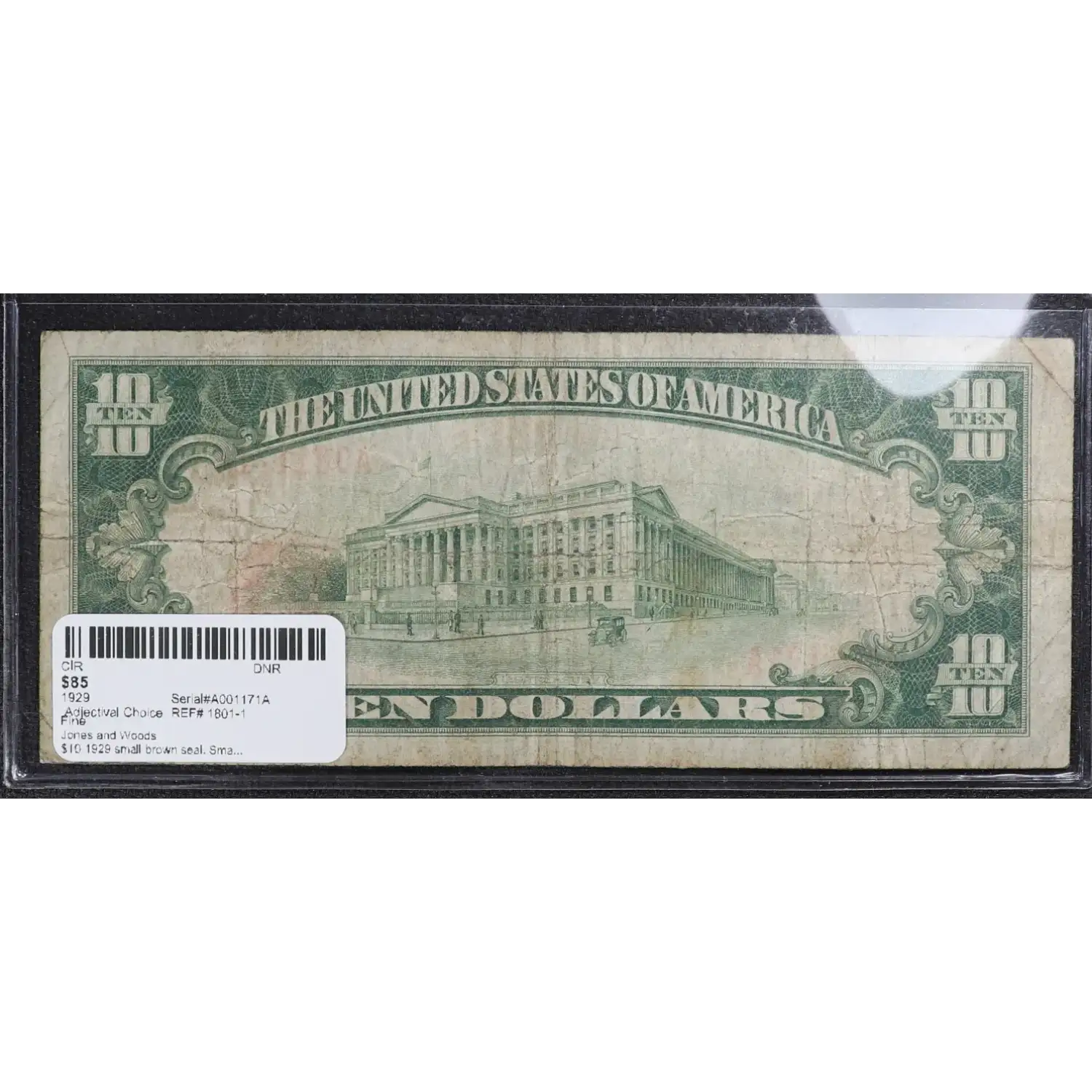 $10 1929 small brown seal. Small National Bank Notes 1801-1