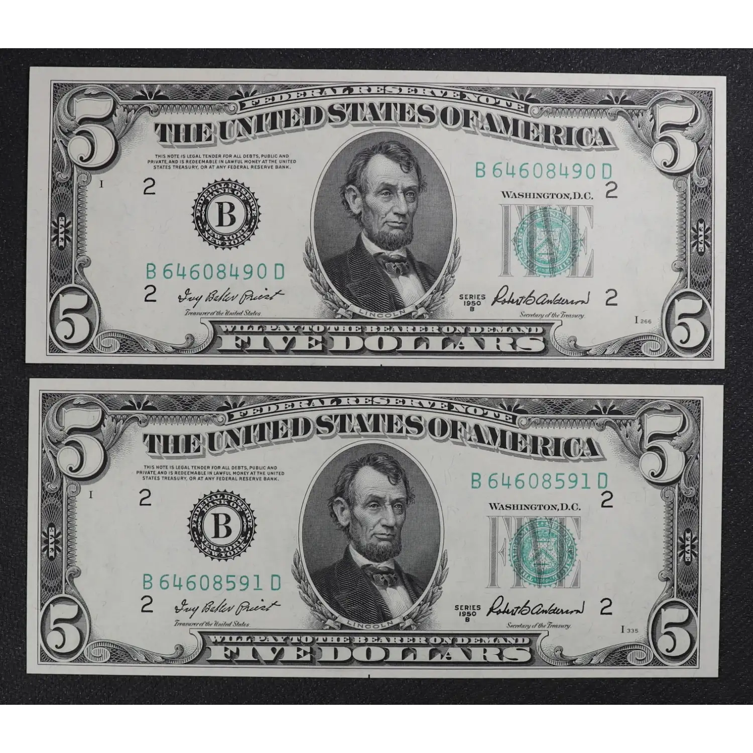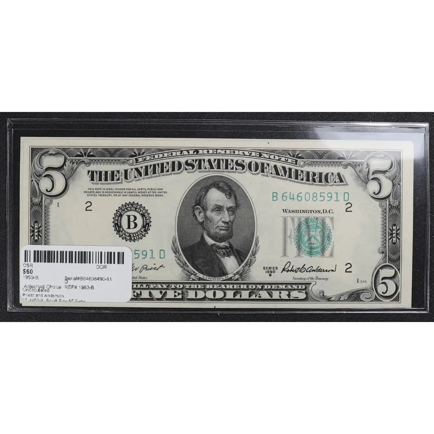 $5 1950-B. Small Size $5 Federal Reserve Notes 1963-B
