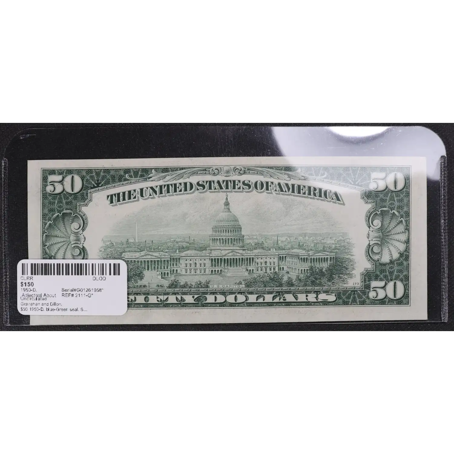 $50 1950-D. blue-Green seal. Small Size $50 Federal Reserve Notes 2111-G*