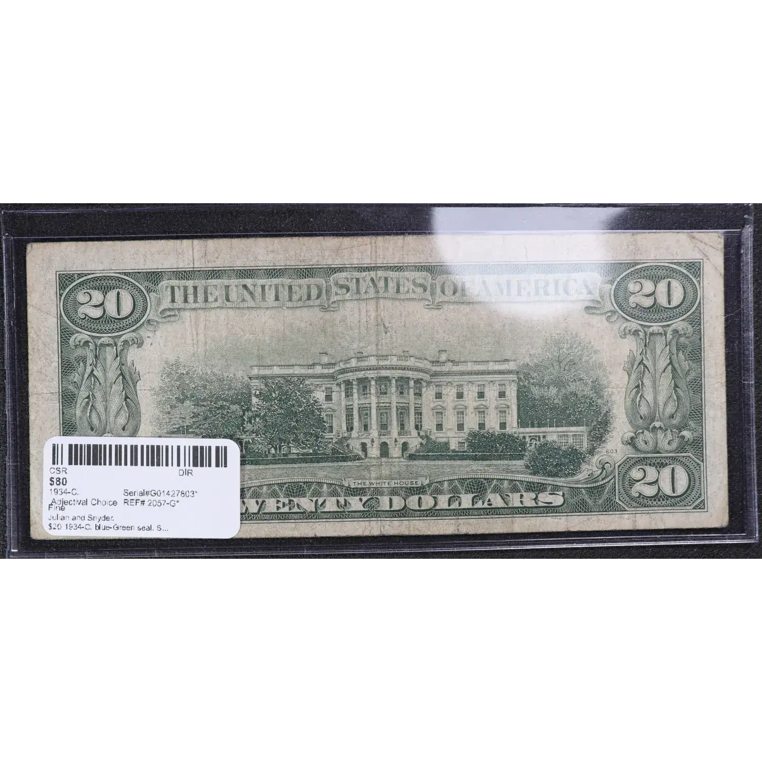 $20 1934-C. blue-Green seal. Small Size $20 Federal Reserve Notes 2057-G*