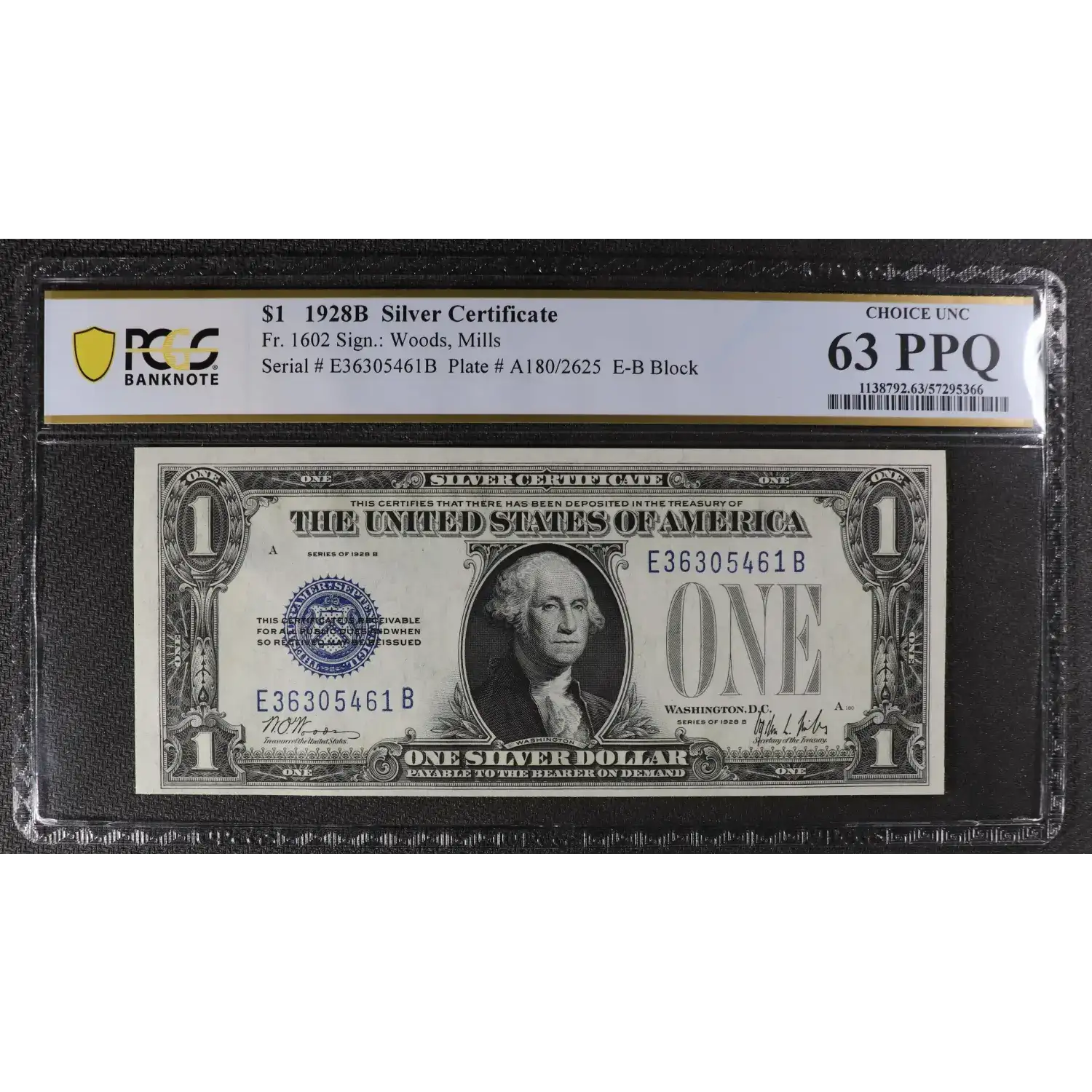 $1 1928-B blue seal. Small Silver Certificates 1602