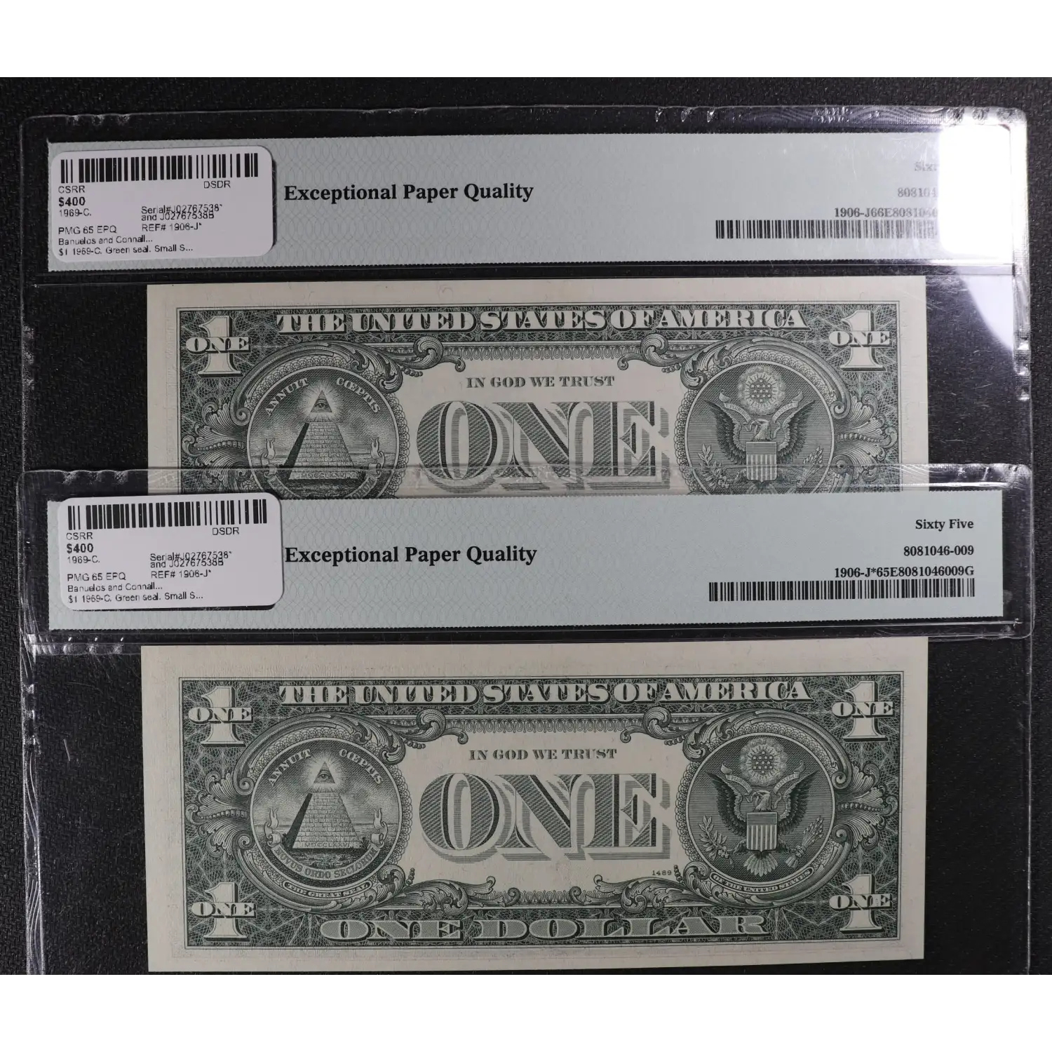 $1 1969-C. Green seal. Small Size $1 Federal Reserve Notes 1906-J*