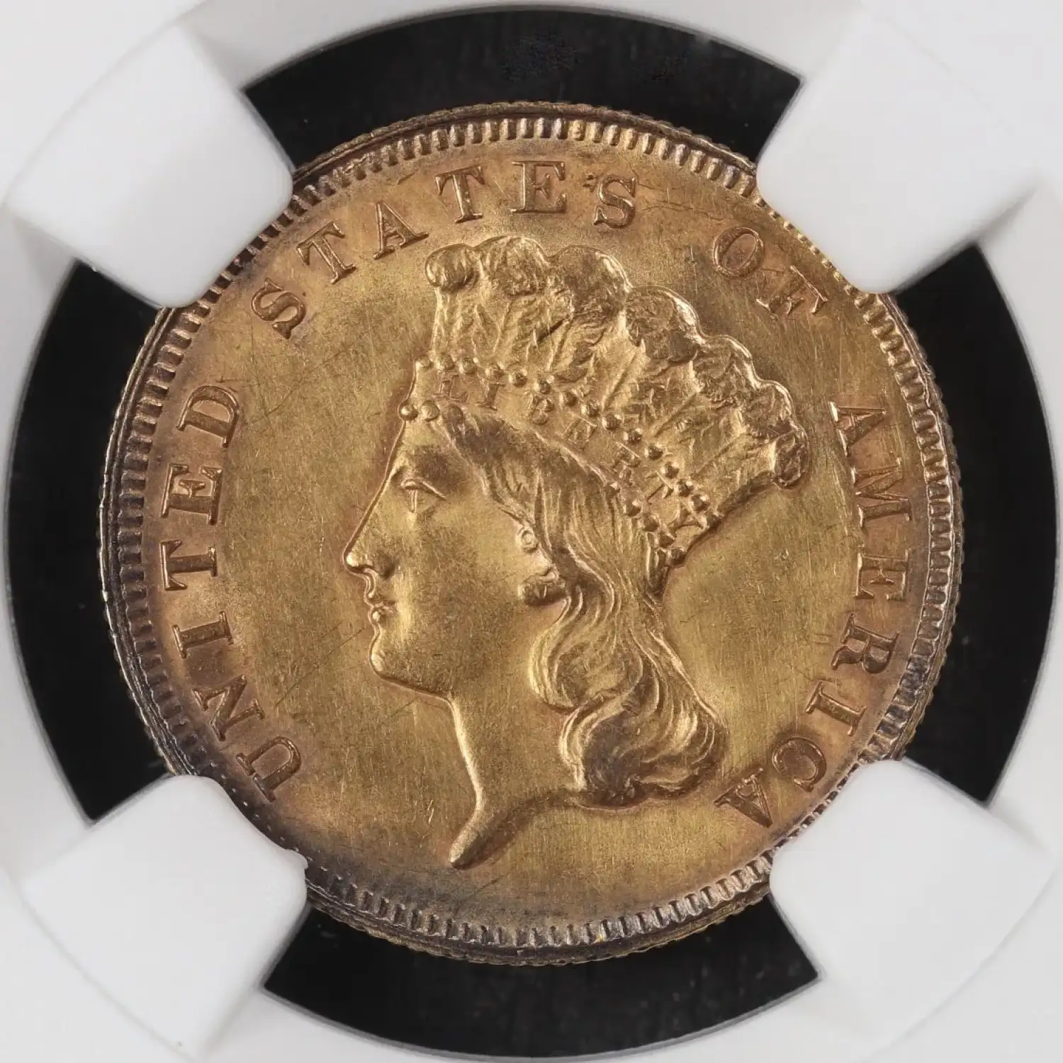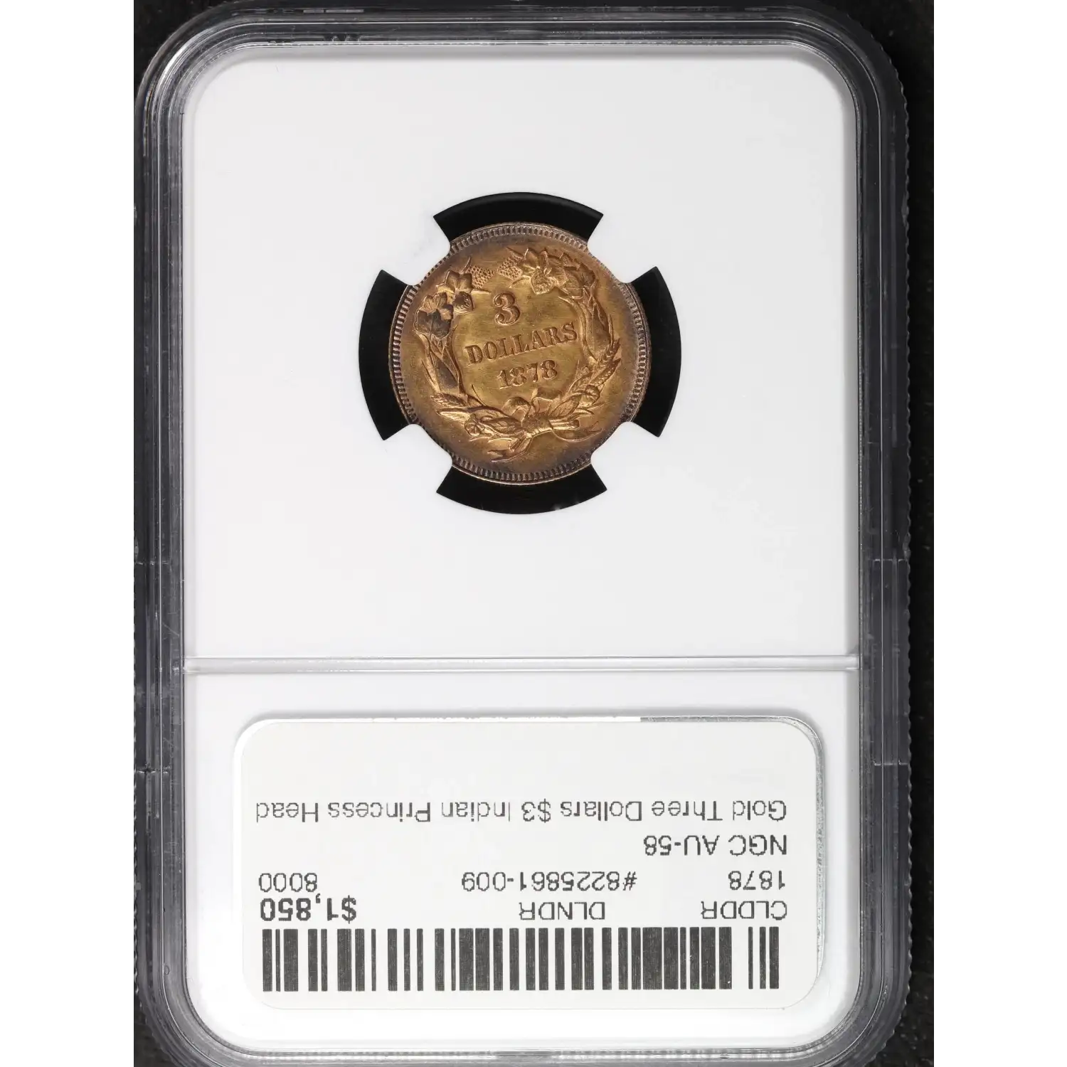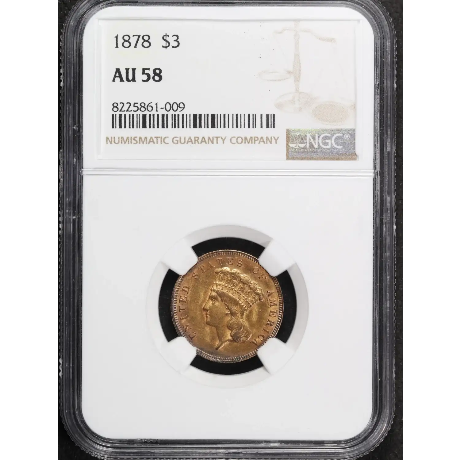 1878 Gold Three Dollars $3 Indian Princess Head NGC AU-58