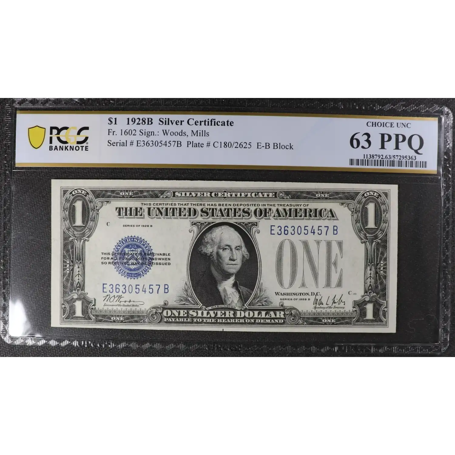 $1 1928-B blue seal. Small Silver Certificates 1602