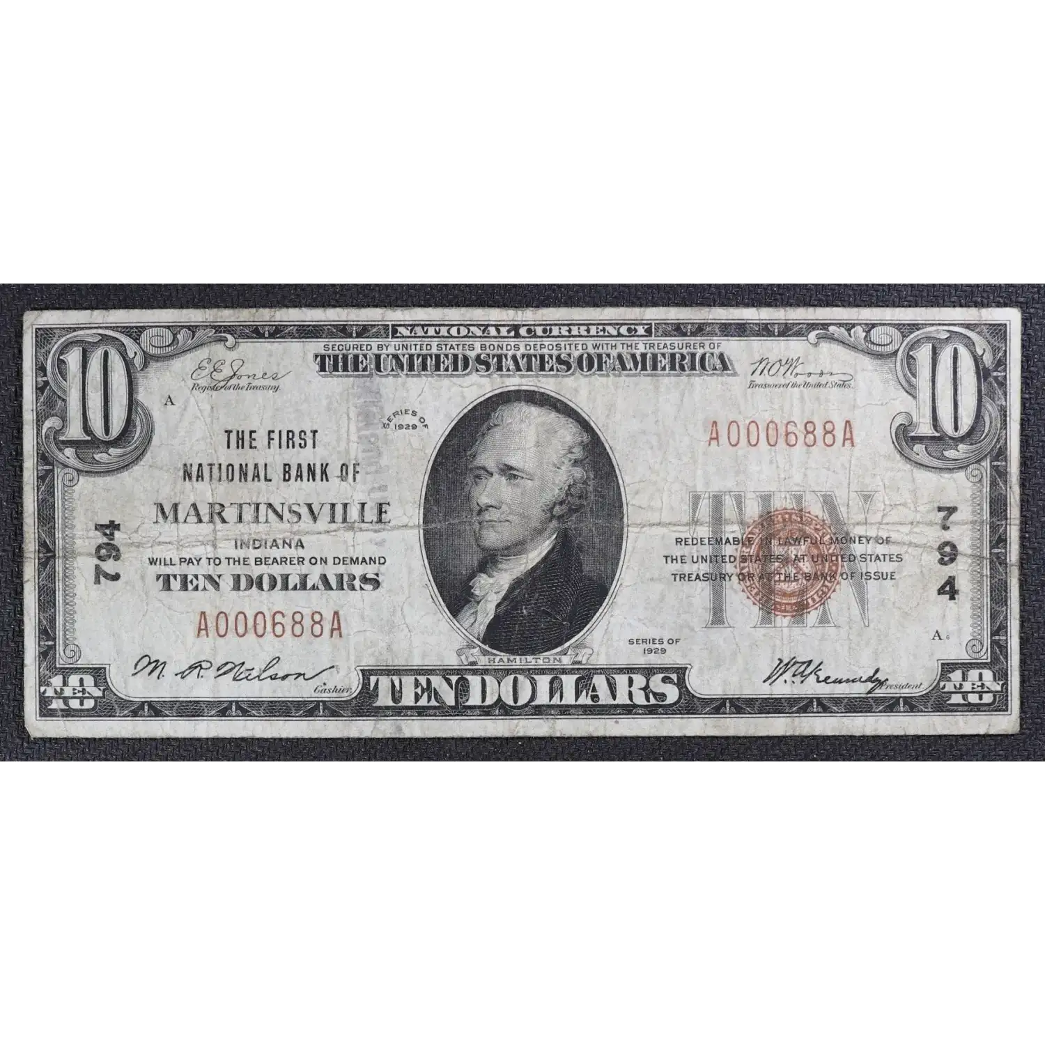 $10 1929 small brown seal. Small National Bank Notes 1801-1