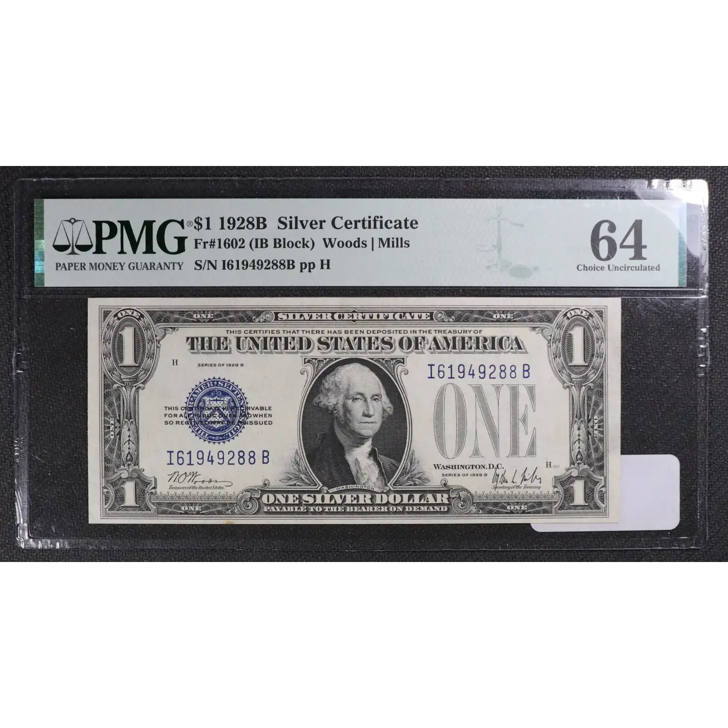 $1 1928-B blue seal. Small Silver Certificates 1602