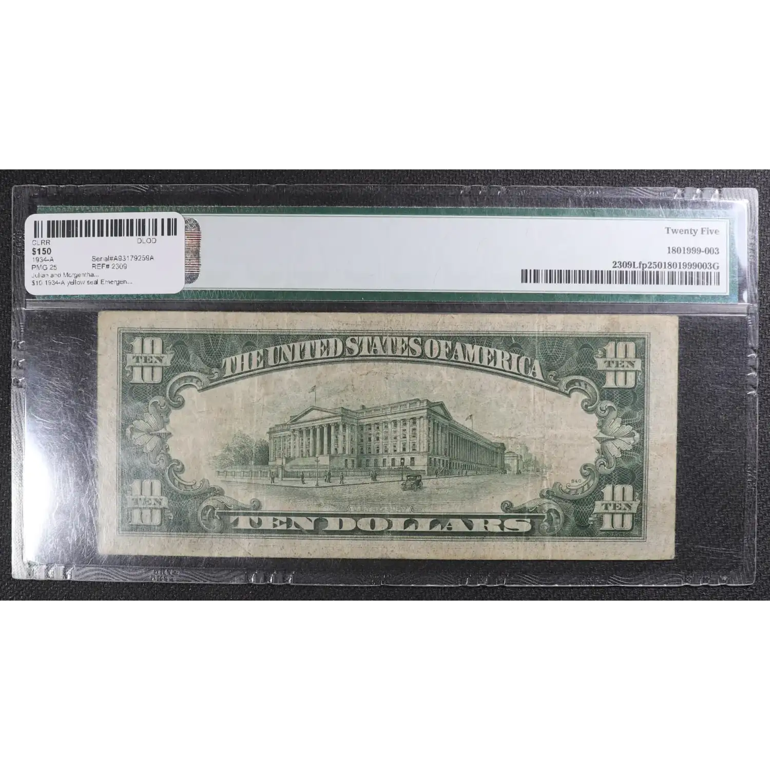 $10 1934-A yellow seal Emergency Notes Issued During WW2 2309