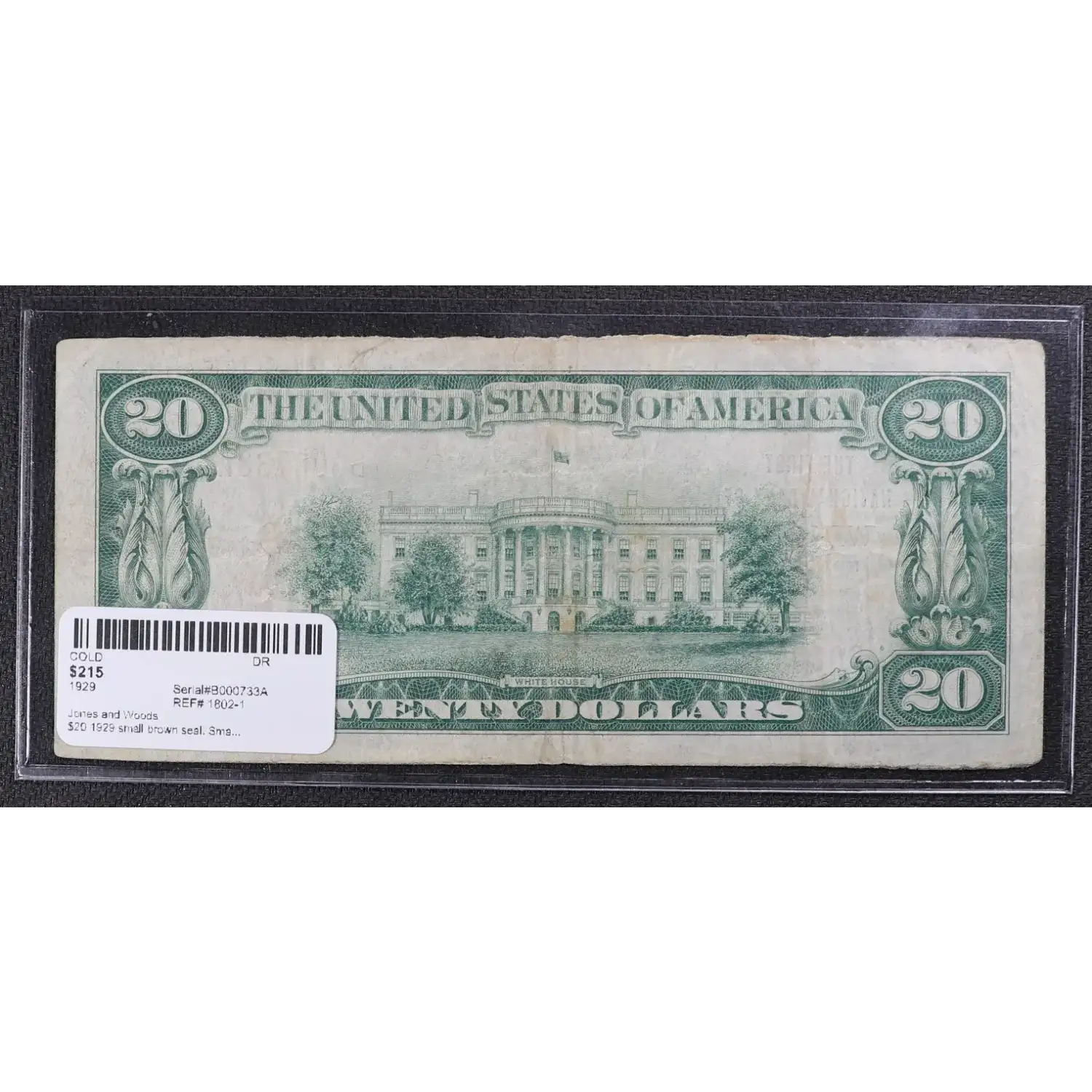 $20 1929 small brown seal. Small National Bank Notes 1802-1