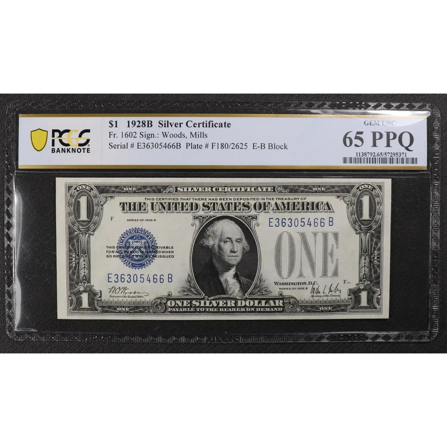 $1 1928-B blue seal. Small Silver Certificates 1602