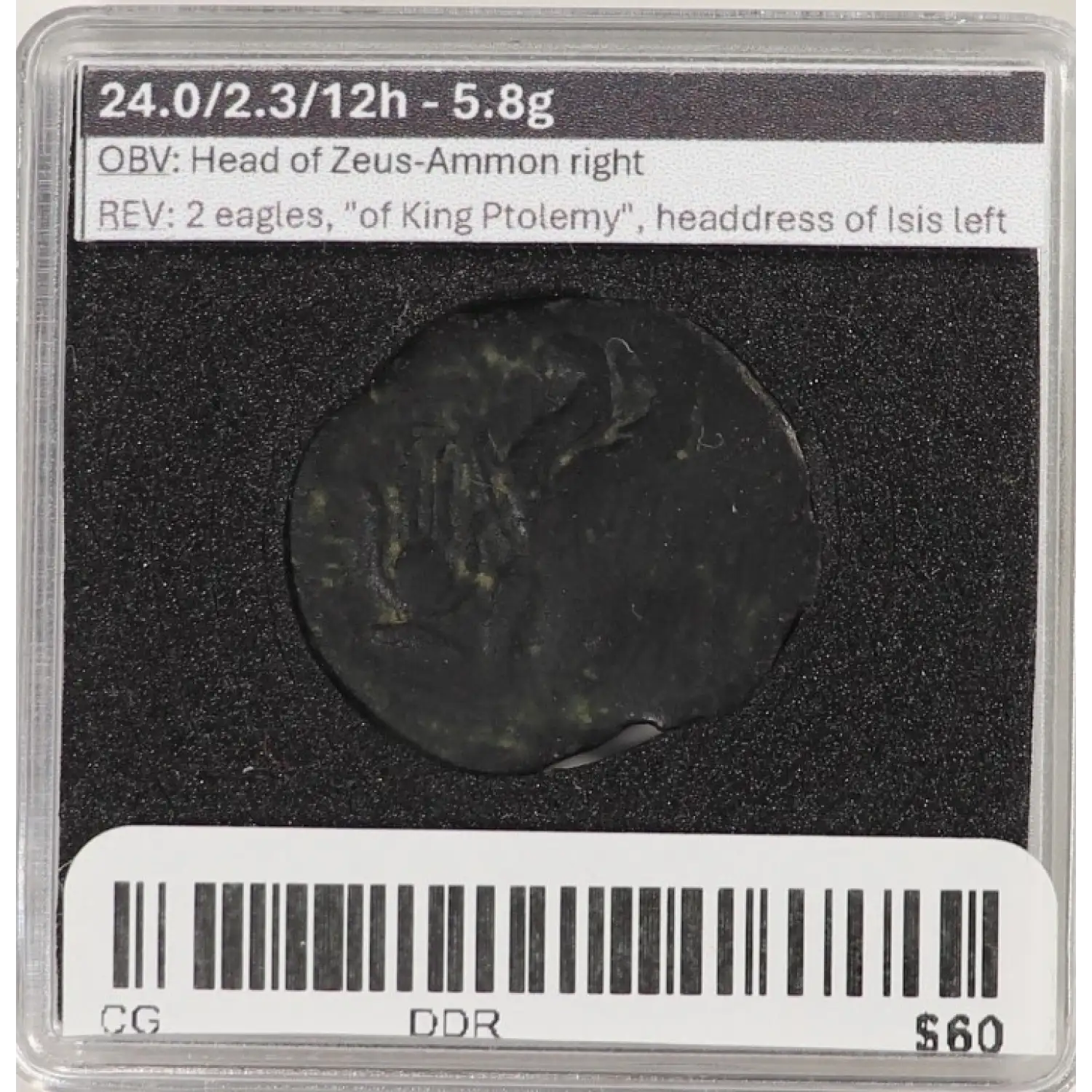 Ptolemaic Cleopatra VIII (the famous one) AE Obol after 48 BC Paphos mintCoin is in an unsealed "quadrum" holder for display purposes, insert a thumbnail in bottom left corner to pull apart