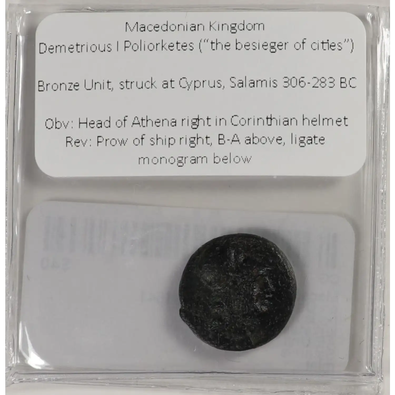 Macedonian Demetrious I Poliorketes AE Unit Salamis mint Ancient Greek Coin 306-283 BC Athena/Prow
