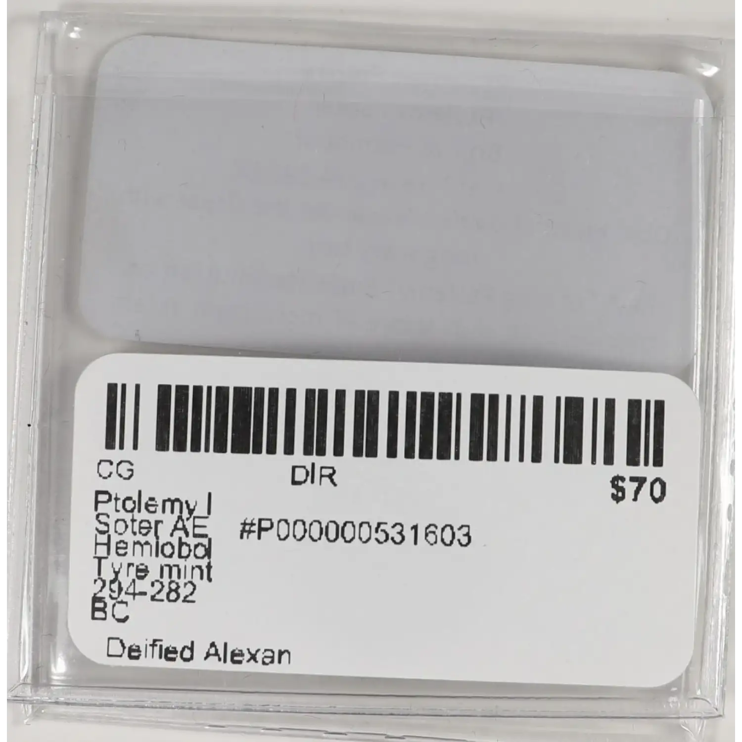 | Year | Ptolemy I Soter AE Hemiobol Tyre mint 294-282 BC |