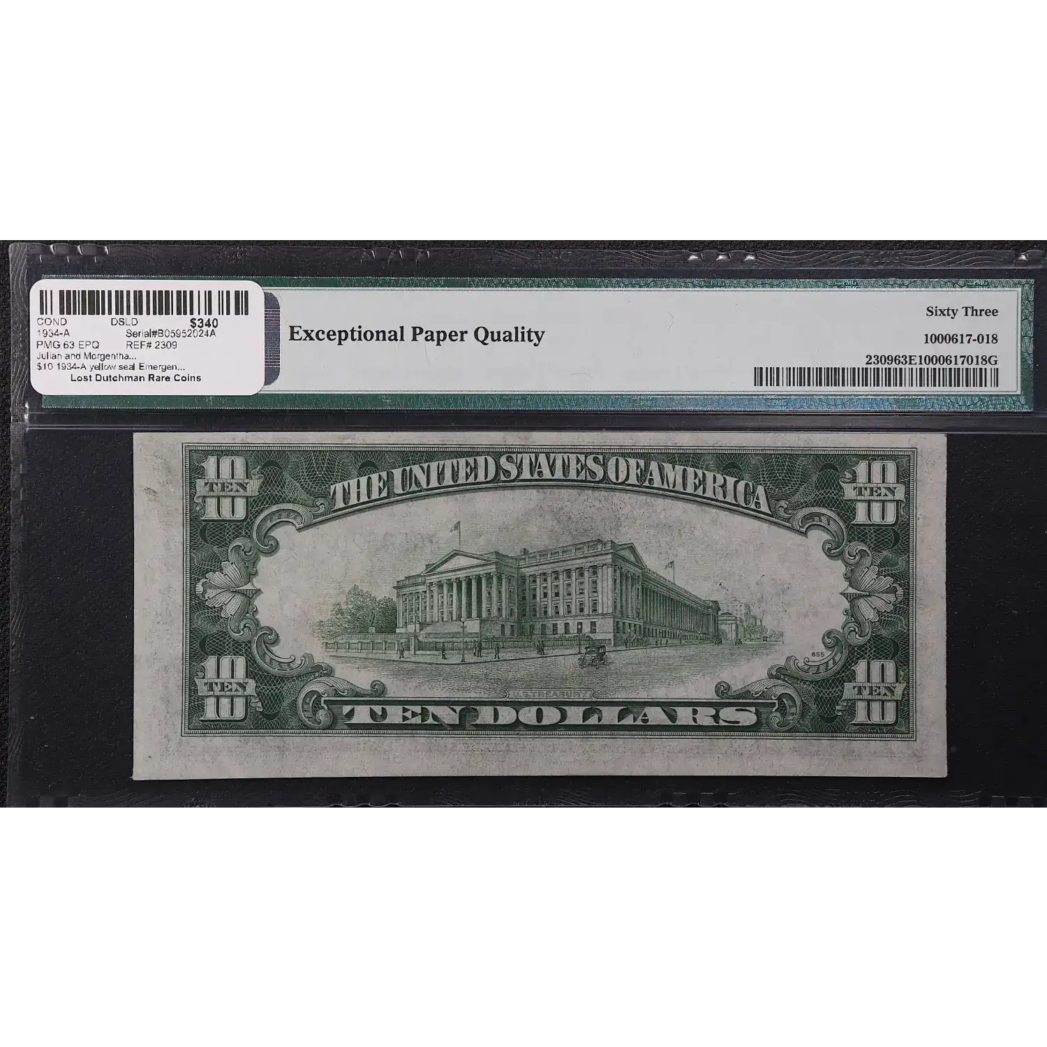 $10 1934-A yellow seal Emergency Notes Issued During WW2 2309